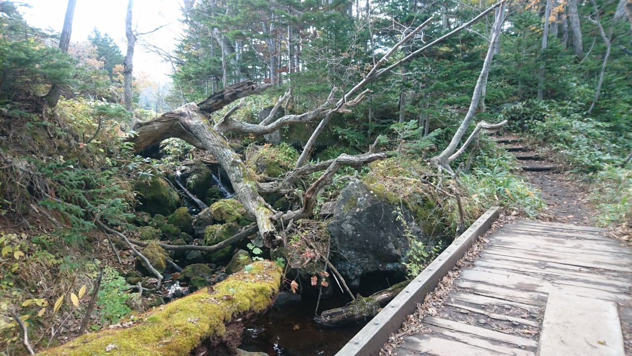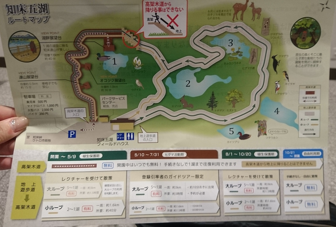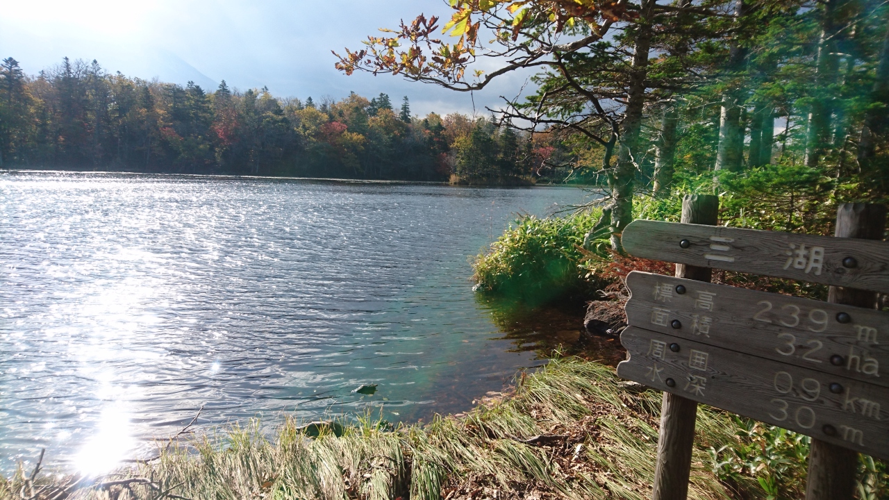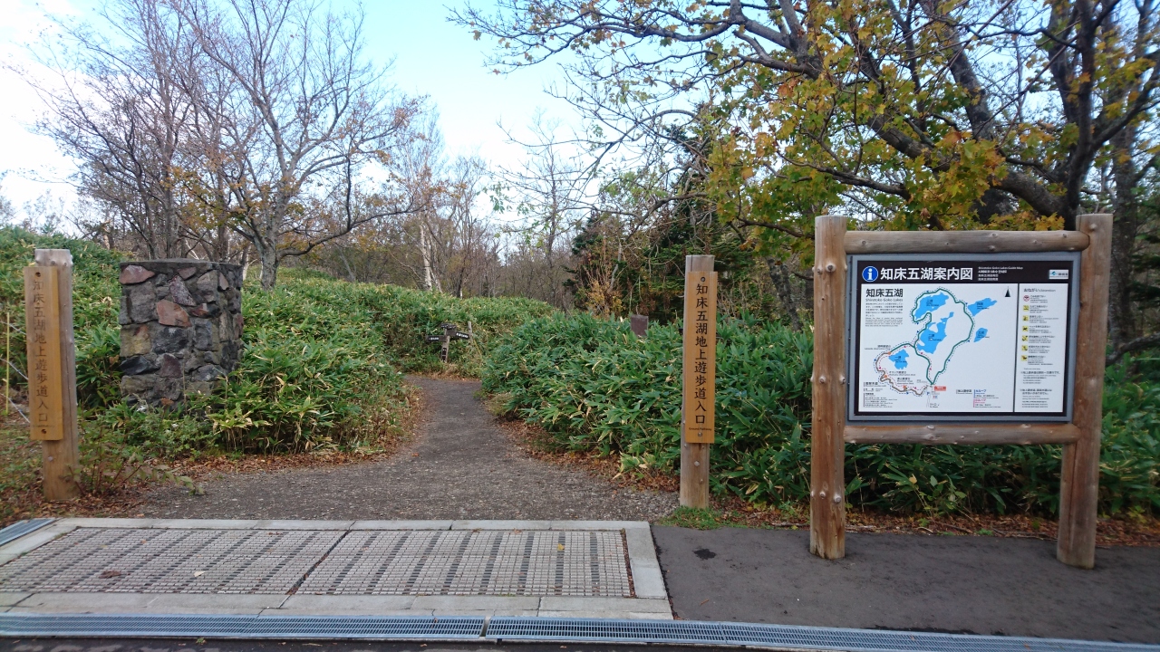 (日)の8時頃、車で到着。今日は地上遊歩道が歩けるとの事だったので、250円を支払い、申請書を記入し10分の講習を受けて大ループコースへ。講習は10分間隔で開催されていて8時20分の回はたったの5人だった。前日の雨の影響でぬかるみが発生している箇所もあったが、五湖を1,5時間掛けて散策。天気もよく少し紅葉もしていて爽やかに散策出来た。高架木道からは逆行出来ないようにドアが設置されてあった。(木道側からは取っ手がないので開けられない)高架木道は無料エリアなので観光客が多かった。10時頃は曇ってきて空気も冷たくダウン、マフラー、手袋をしたくらい。知床五湖に来た際は大ループがオススメ!駐車代は500円。