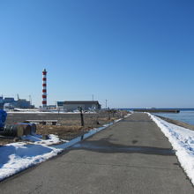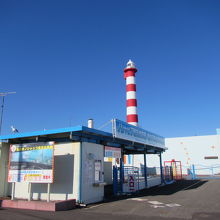 赤と白の目立つ灯台です。