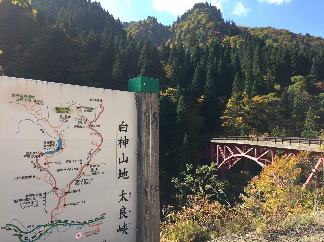 藤里町の中心部から車で30分くらいの場所に大良峡があります。