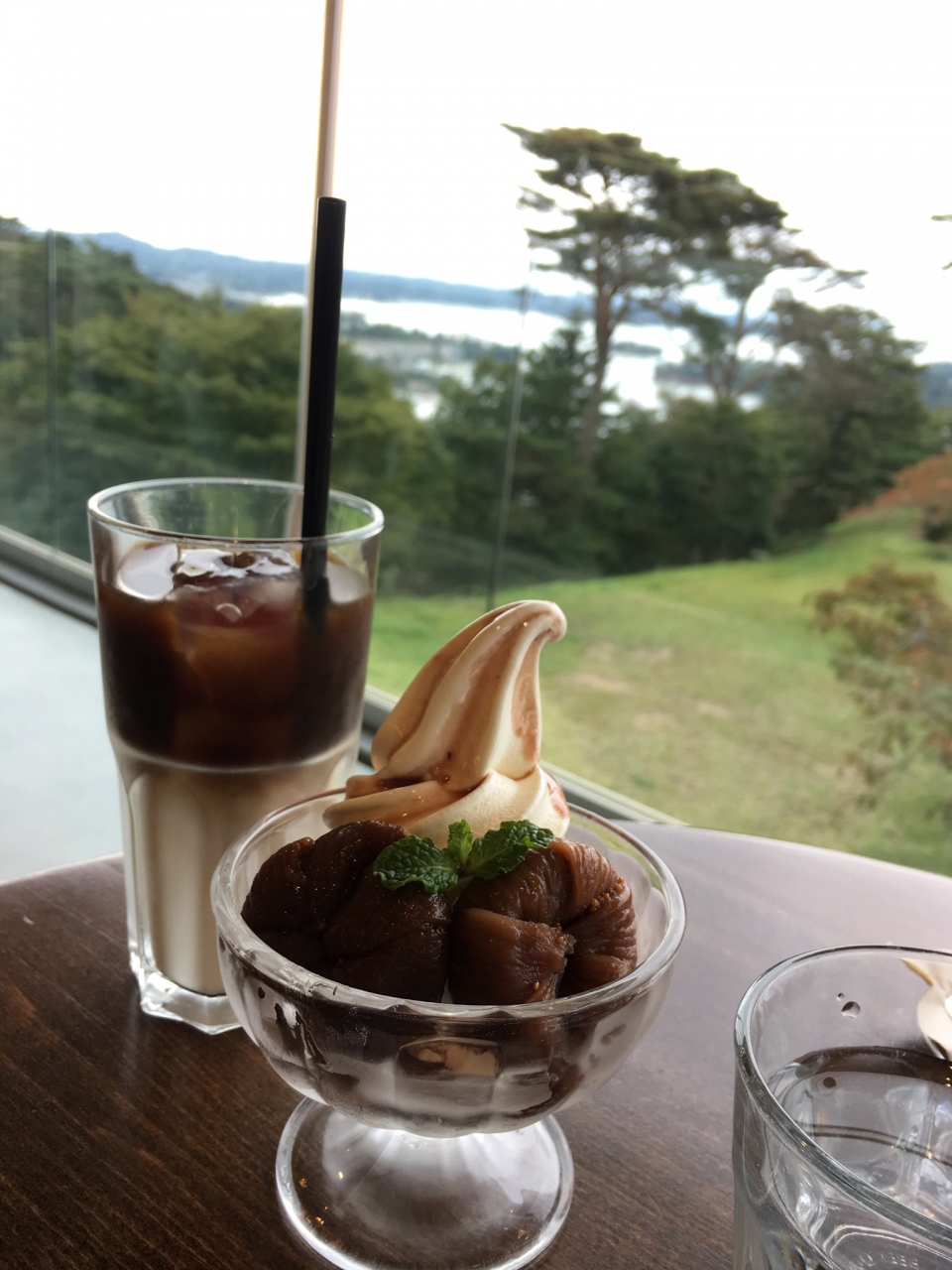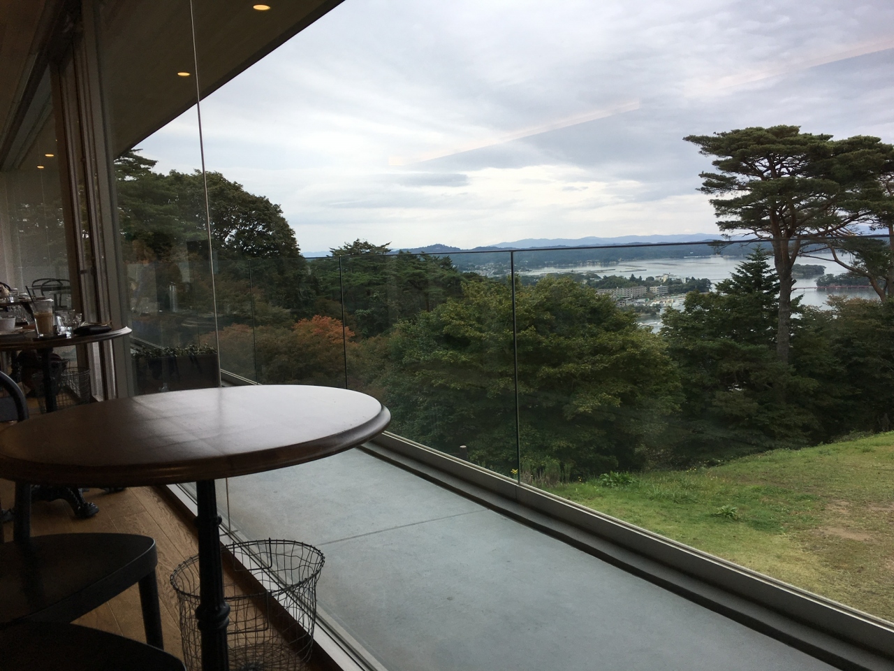 カフェは山の中腹にあり、ガラス張りの店内から松島の景色を眺める事が出来ました!