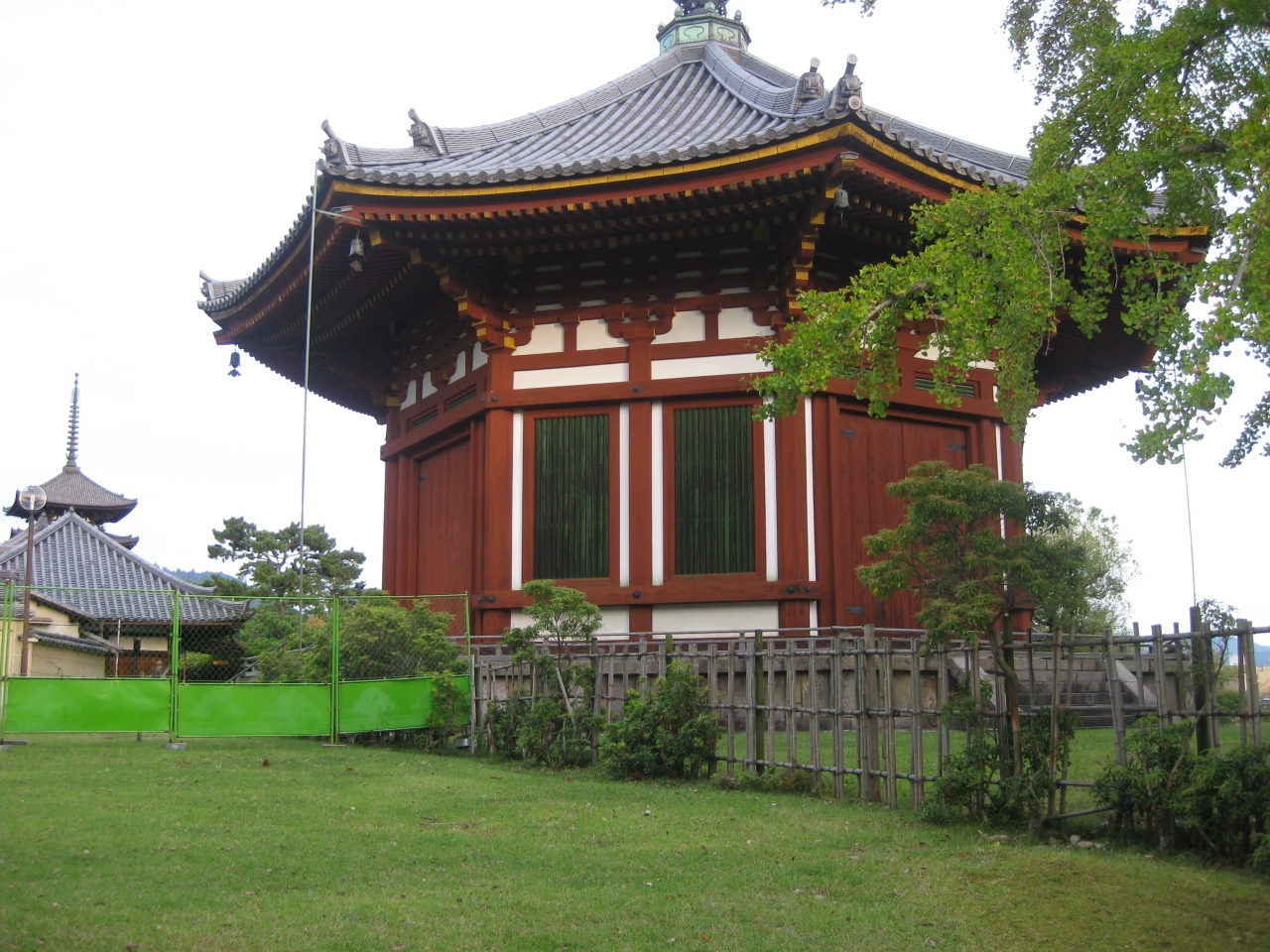 世界遺産興福寺の境内五重塔、東金堂に対峙して西側の南に建つ八角の円堂。藤原摂関北家の祖藤原内麻呂の冥福を祈って子の藤原冬嗣が弘仁4年(813年)に創建した堂宇。藤原氏寺である興福寺の中でも特殊な位置を占めていたそうです。境内の中で西側に位置して朱色の八角壁が鮮やかでひときわ目立ちます。