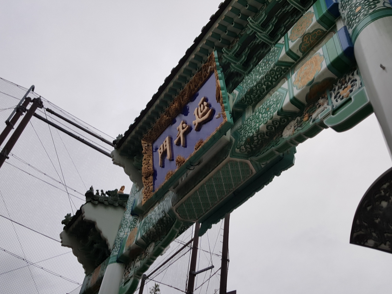 門の両脇は学校の校庭があるのでちょっと中華街という気はしませんがまっすぐな道路の先には中華街が見えます。