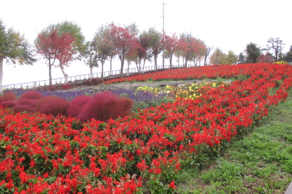 10月13日に訪れましたら、今年の営業が終了していました。10月9日まではやっていたそうです。しかし、お花はかなり残っていました。特にサルビアはまだまだ真っ赤で華やかでした。ところで、ぜるぶとは何語でどんな意味があるのかと思ったら、「かぜ」「かおる」「あそぶ」の後ろの文字を並べたのだそうです。この3つはこの花園の設計のコンセプトかなんかなのでしょうね。また、ここは亜斗夢の丘とも名乗っていますが、このアトムはここを運営しているのがアトム農機という会社だからだそうです。