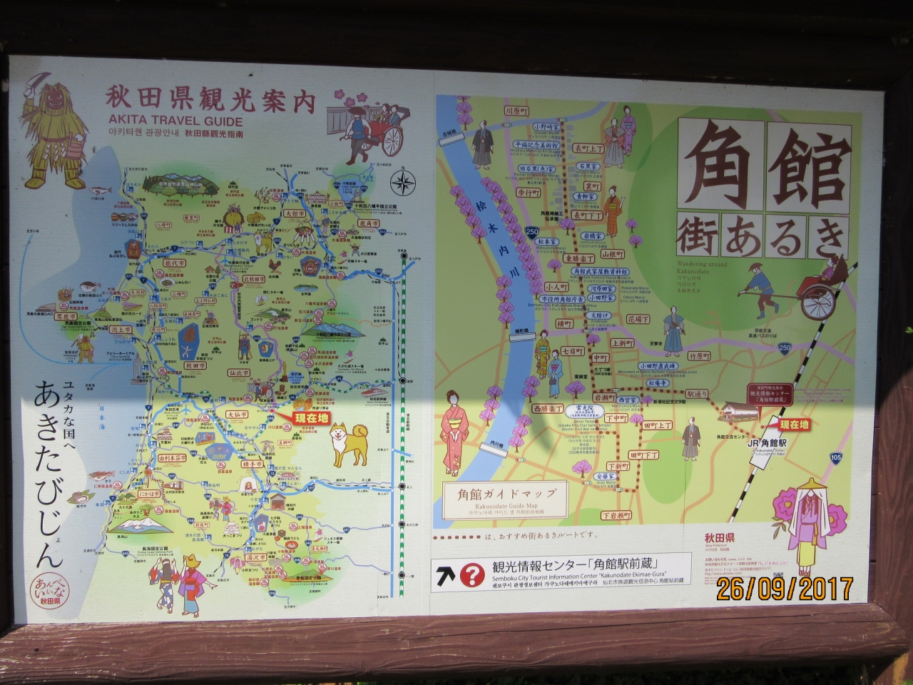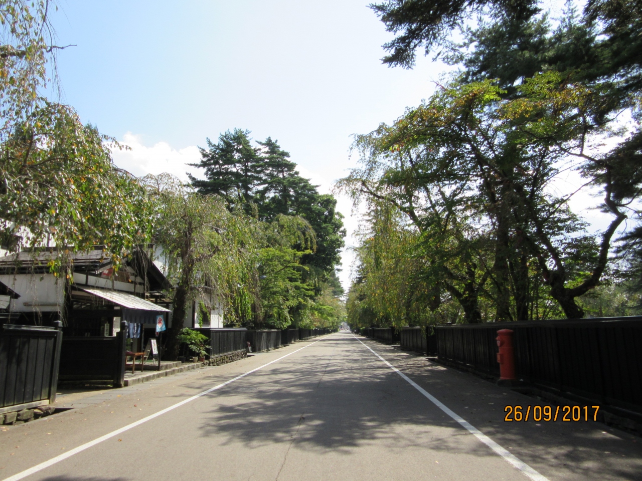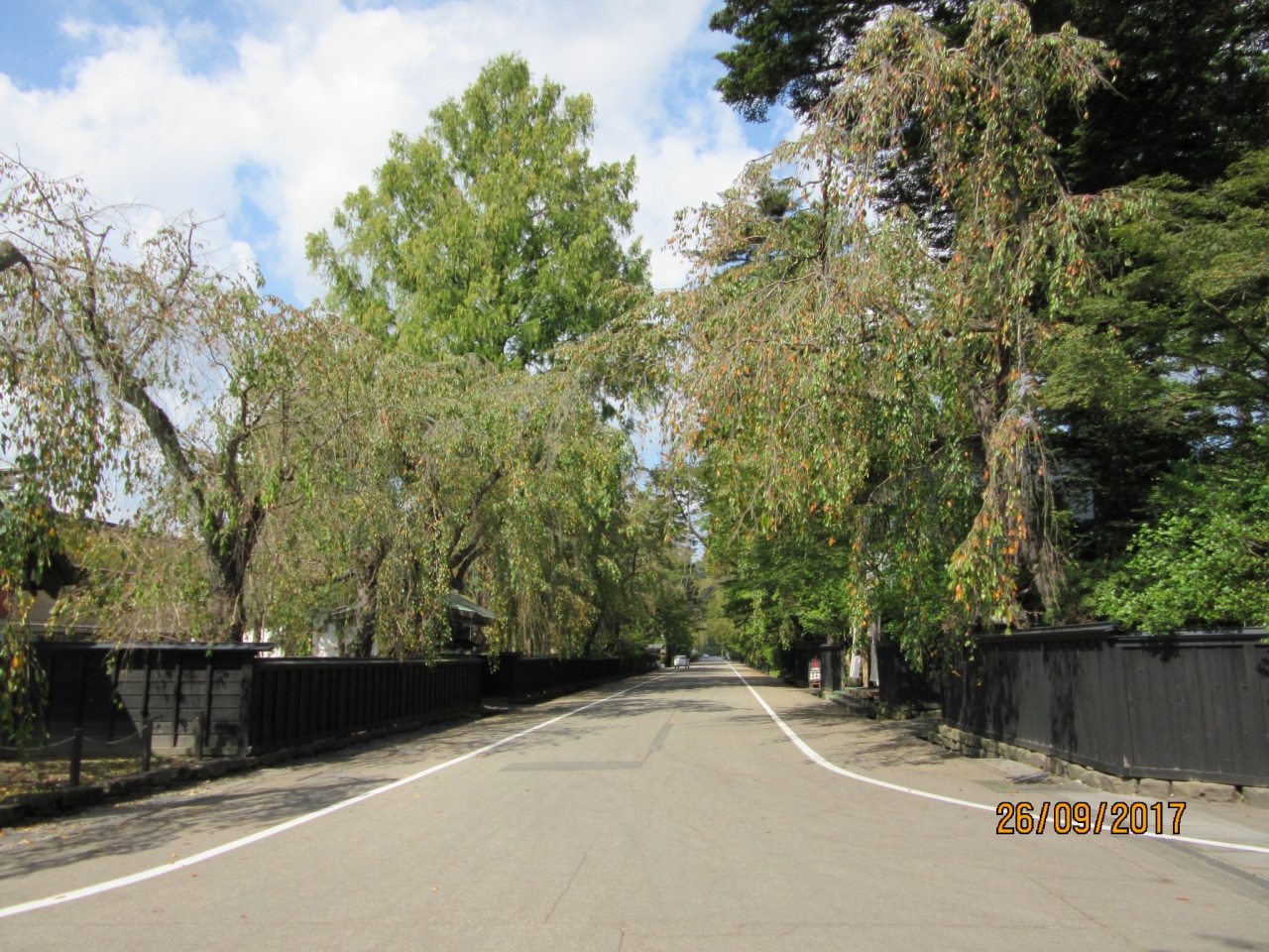 角館駅から徒歩約15分で武家屋敷通りに着きます。着いて道幅の広さと重厚な屋敷群と深い木立ちに驚きました。関ケ原の合戦で日和見の態度をとって転封された佐竹(北)家の所領として城下町を形成してから400年近く町の形は変わらず、道路の幅から曲がり角までそのまま残っていた。何故角館にこのような形で残り現在も子孫が住み続けているのか?を駅前の観光案内所で聞いたところ、1.道路幅が広いので都市計画でも道路を変更する必要がなかった というような話を聞きました。9月末で有名な桜の季節でなかったのが残念ですが、十分見応えがあり印象に残りました。【みちのくの小京都】は記憶に残る素晴らしい名所でした。