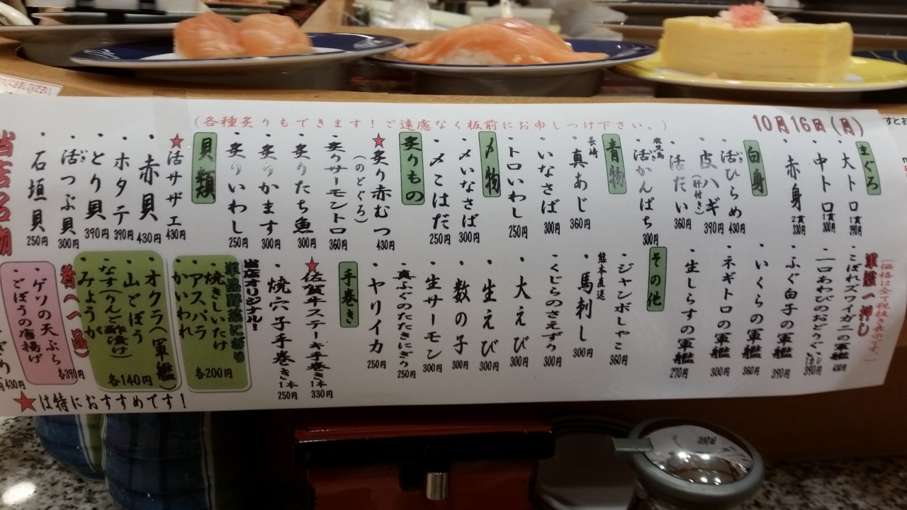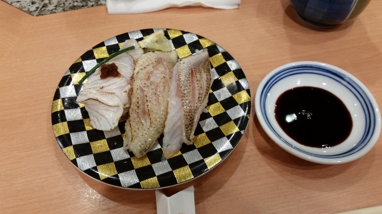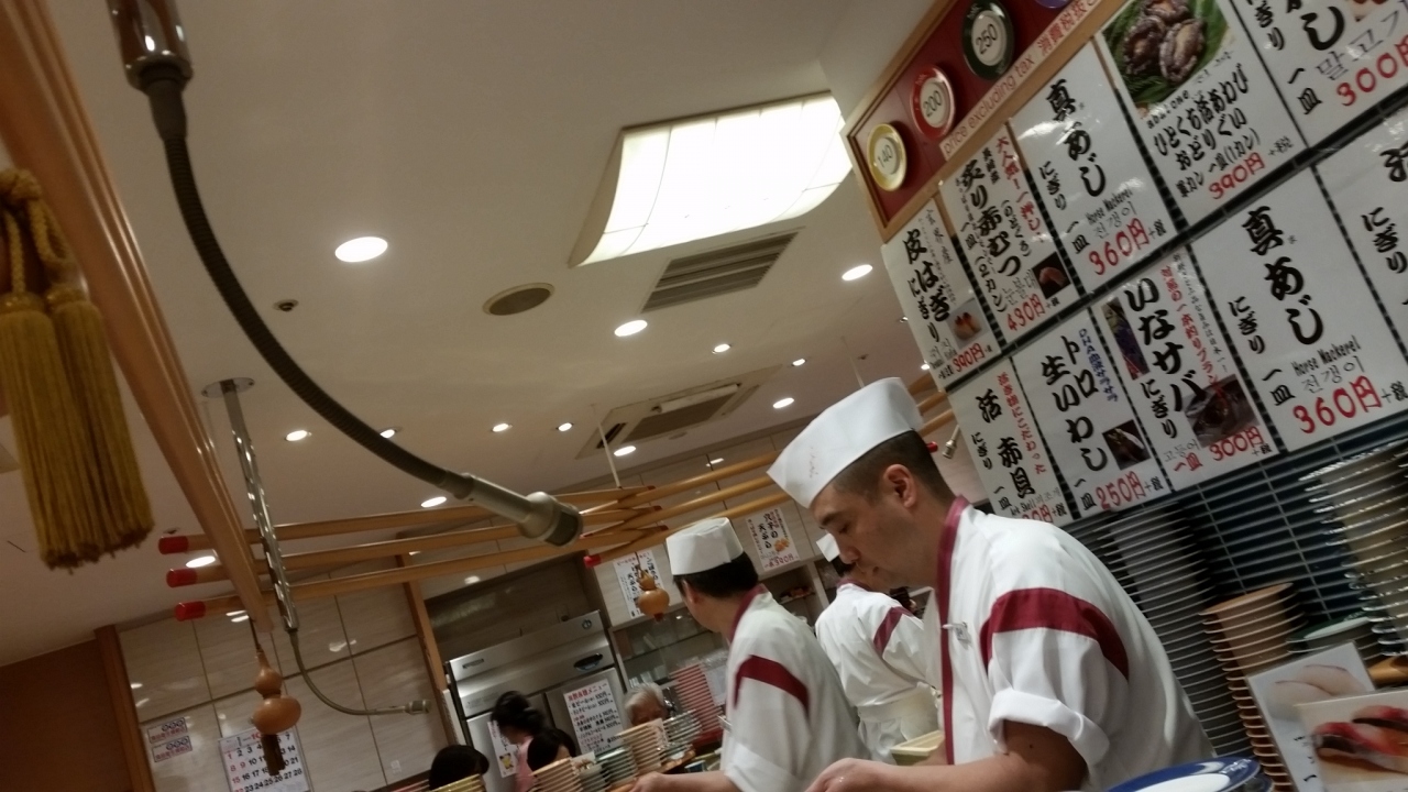 天神ソラリア地下2階にある回転寿司屋です。お客が常にいっぱいで、外の椅子に座って待ちます。外の看板にあるメニューを見ながら何を食べようか考えます。回転ずしなので、お客の回転も早いです。九州らしい甘い刺身醤油に付けて頂くお寿司は美味しいです。