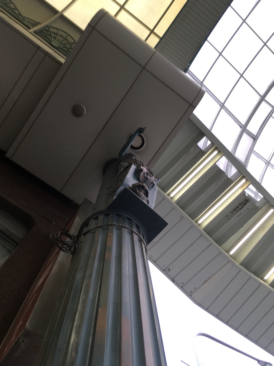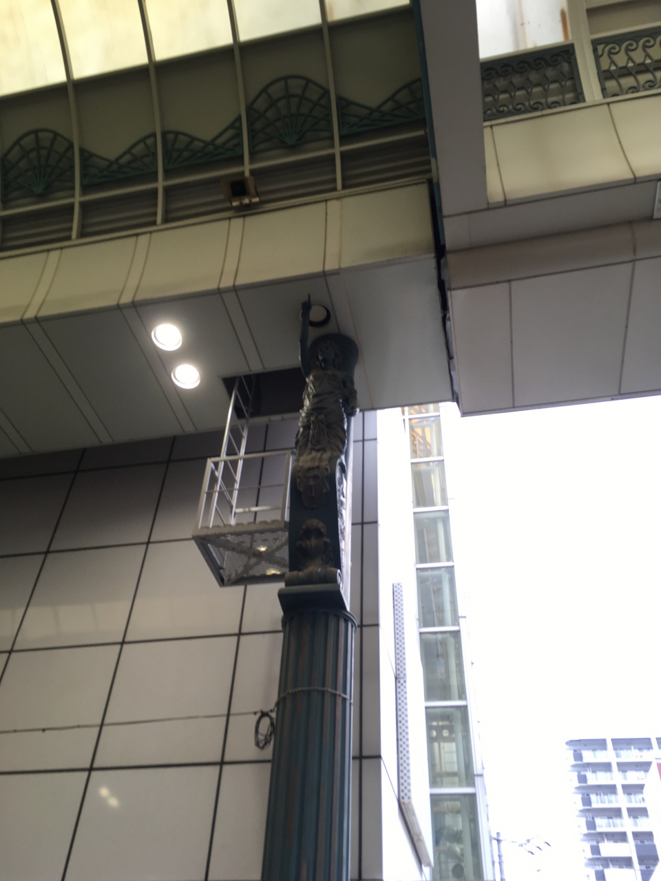 元町商店街にある女神の像。この手の銅像などは普通路面に置きますが、ないなぁと思ってみたらなんと天井に設置されていました。とても凝った作りであろう女神の像なのにもったいない。せめてと写真を撮っていたら商店街の方から話しかけられ、この女神の像の由来なども聞けました。神戸の人は親切な人が多いです。