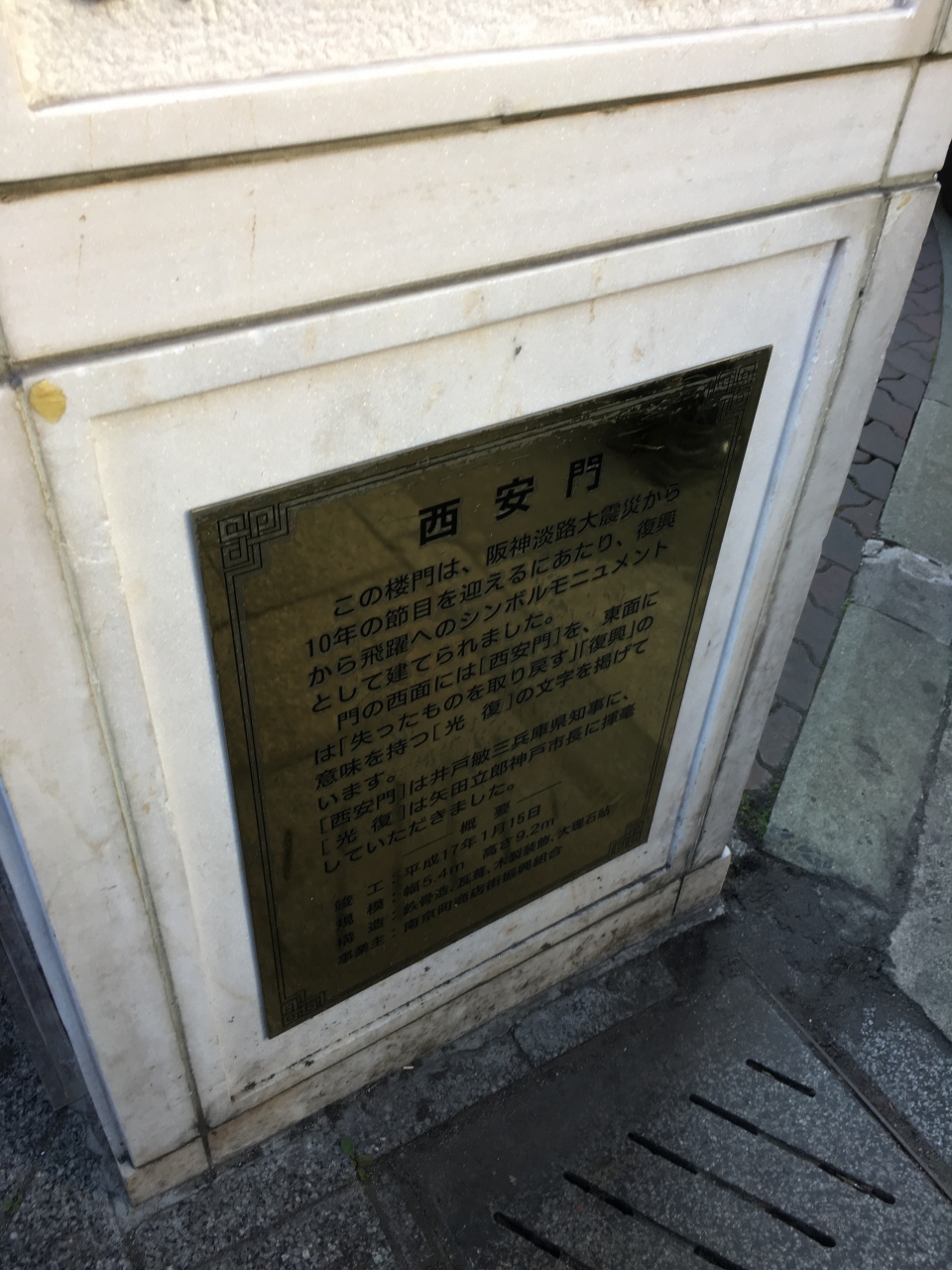 南京町には3つの門がありますが、この西安門は1000年前の宋の時代の門をモデルにしたという、いかにも中華街っぽい赤が華やかな色使いが目立ちます。由来などもリリーフが飾ってあるので読むことが出来ます。場所は大丸とは逆のスマイルホテル側。夜はかなり静かな一角です。