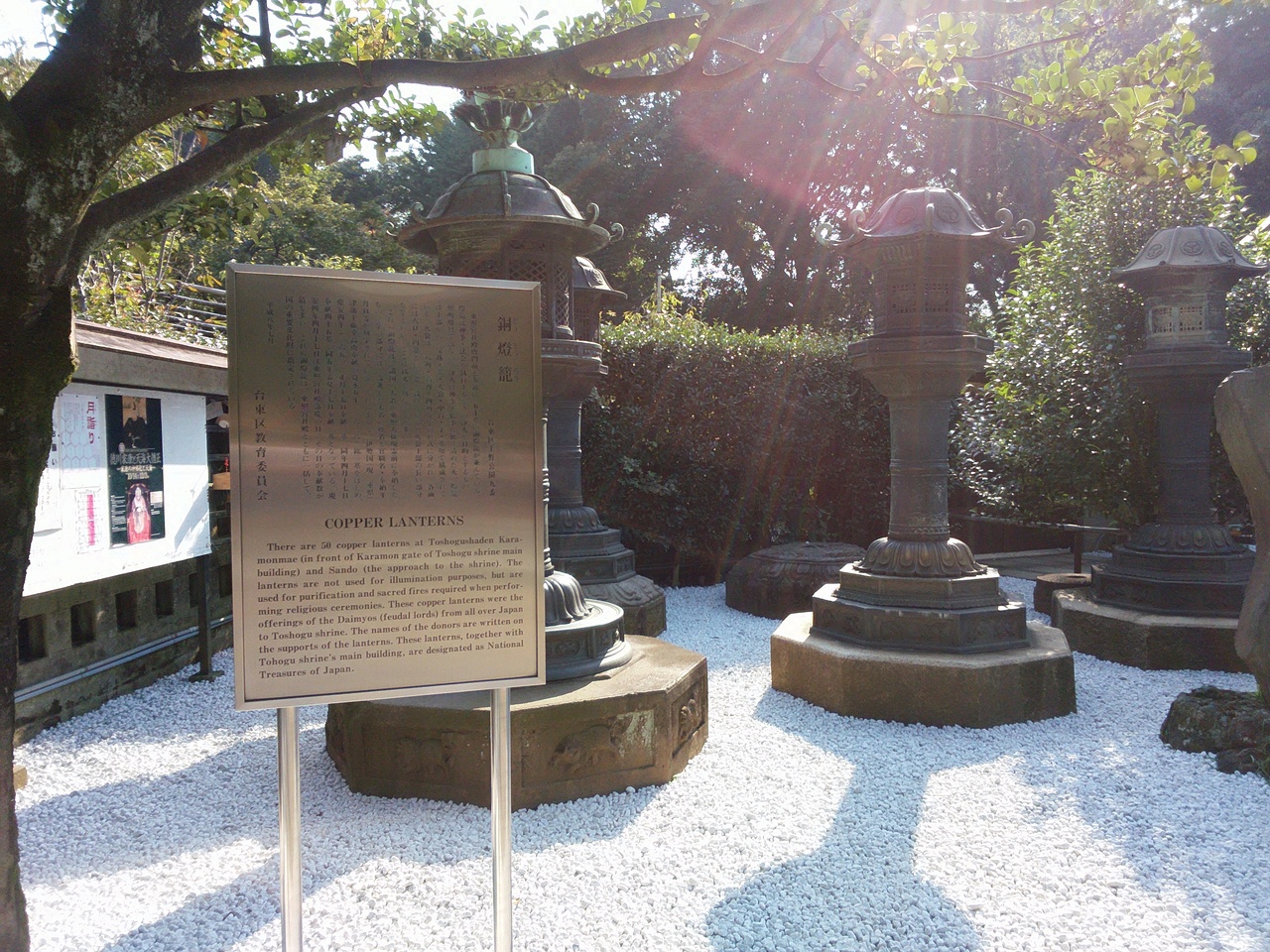 上野東照宮の参道には、諸大名が奉納した200基以上の石燈籠が設置されていますが、これとは別に48基の銅燈籠も設置されています。銅燈籠も諸大名が奉納したものらしいですが、特に、唐門の両側にある6基の銅燈籠は、紀伊・水戸・尾張の徳川御三家から2基ずつ寄進されたものだそうです。徳川家康の権力の凄さをあらためて思い知らされた気がします。石燈籠も見応えがありましたが、銅燈籠もかなり立派なものなので見応えがありました。