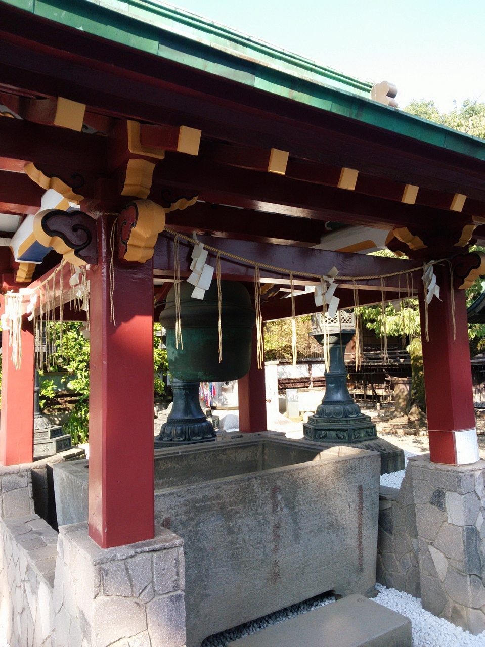 上野東照宮の参道を歩いていくと、唐門の手前(右側)に水屋がありますが、その水屋の屋根の内側にかかっているのがこの鈴です。狛犬の石工、酒井八右衛門が寄進した鈴とのことですが、大きな鈴で、かなりの存在感があるので見応えはありました。この鈴が鳴るのかどうかは分かりませんが、立派な鈴なので上野東照宮に立ち寄ったら是非見てください。