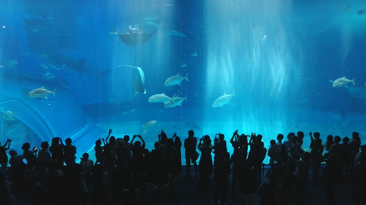 10月の3連休の日曜日に沖縄美ら海水族館に行きました。那覇市からレンタカーで2時間以上かかりました。午前9時頃に着いてので駐車場は空いていました。窓口で購入する場合は並ばなければならないという情報を聞いていたので、事前にコンビニで購入しました。コンビニで購入すると大人1850円が1660円で購入できます。館内に入って特に圧倒されたのが大水槽がある黒潮の海水槽です。ギネス世界記録にも認定されている大水槽から見る群泳に圧倒されました。時にはジンベイザメ2匹を同時に目の前で泳ぐシーンも見ることができました。また、午前9時30分から行われていたマンタのエサやりでは水中にあるエサを食べるシーンではマンタが宙返りして食べているところを見て圧倒しました。このマンタのエサやりは午前9時30分の回でしか行われないため、朝早く行ってラッキーでした。