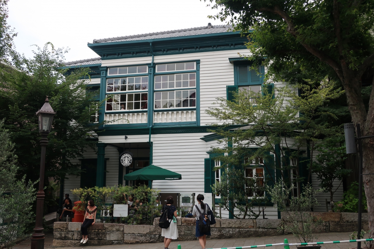 三宮から北野に至る北野坂の途中にあるスターバックスの店舗です。明治40年に建てられた文化財に指定されている異人館を改装した店舗で、歴史ある建物の中で雰囲気をゆっくり味わうことが出来る人気の店です。4時過ぎに行くと店内の座席は満席。仕方なしに外のベンチでライムクリーム&ヨーグルト フラペチーノを頂きましたが、味はいまいちでした。