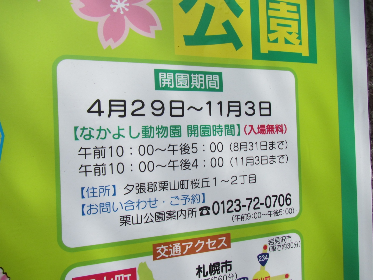 栗山に住む人にとっては、格好のお花見の名所と言えますが、規模で比較した場合、わざわざ遠くから足を運ぶほどではないと感じました。