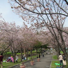 広場では多くの家族連れなどが敷物を敷いてお花見を楽しんでいました。