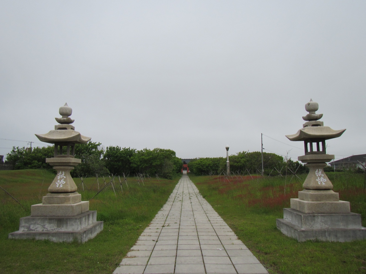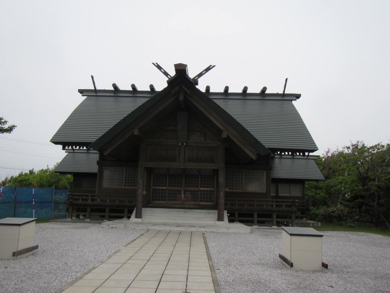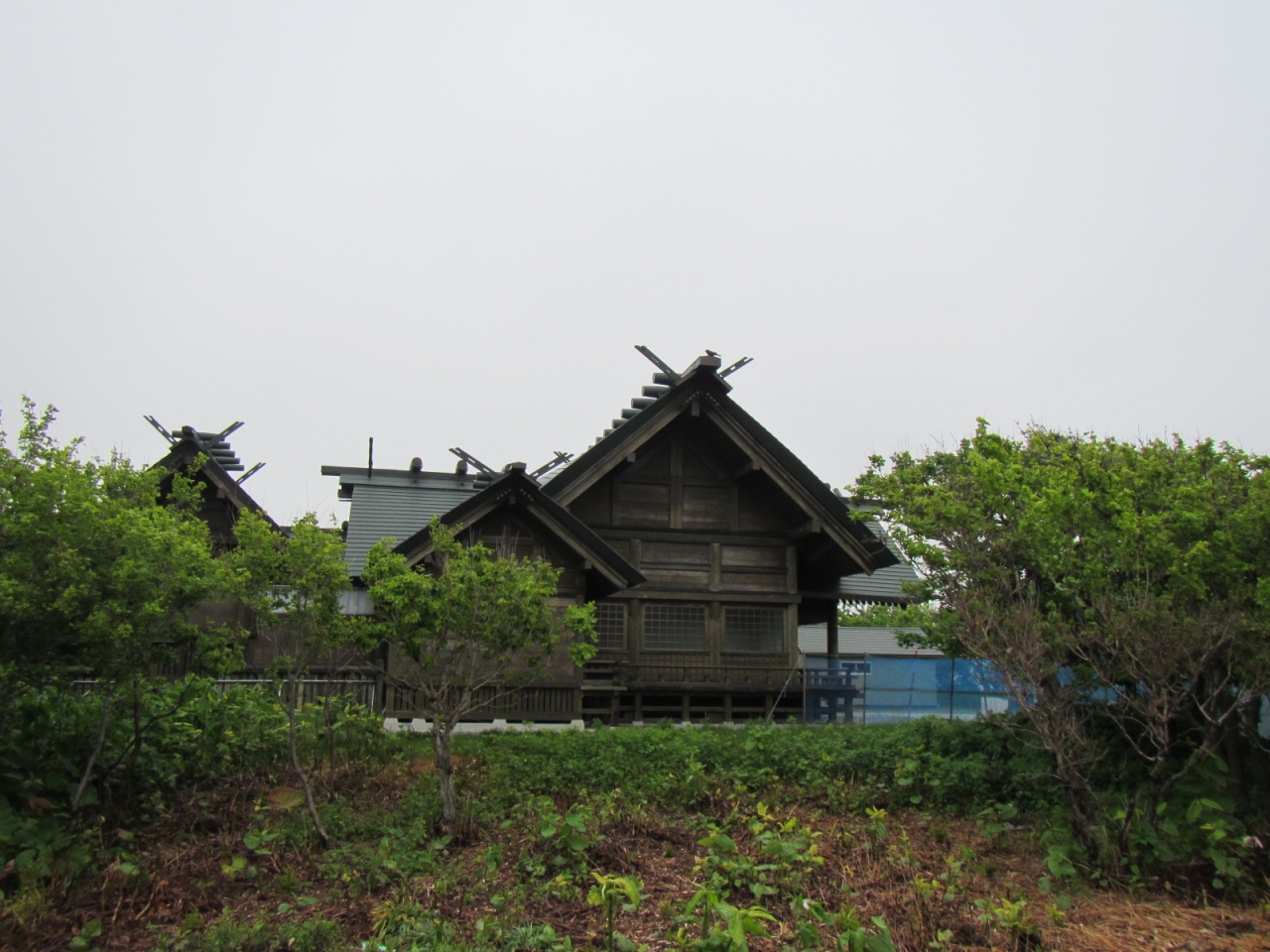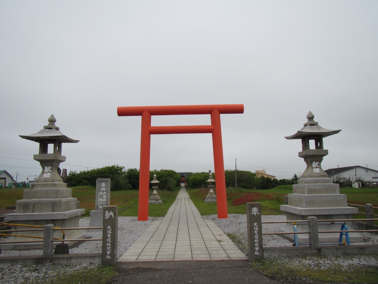 入口は広い草原、参道を行くと天塩川の河畔林の延長のような林沿いを進み、社殿に到着します。