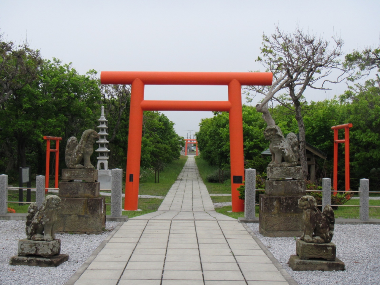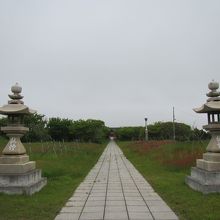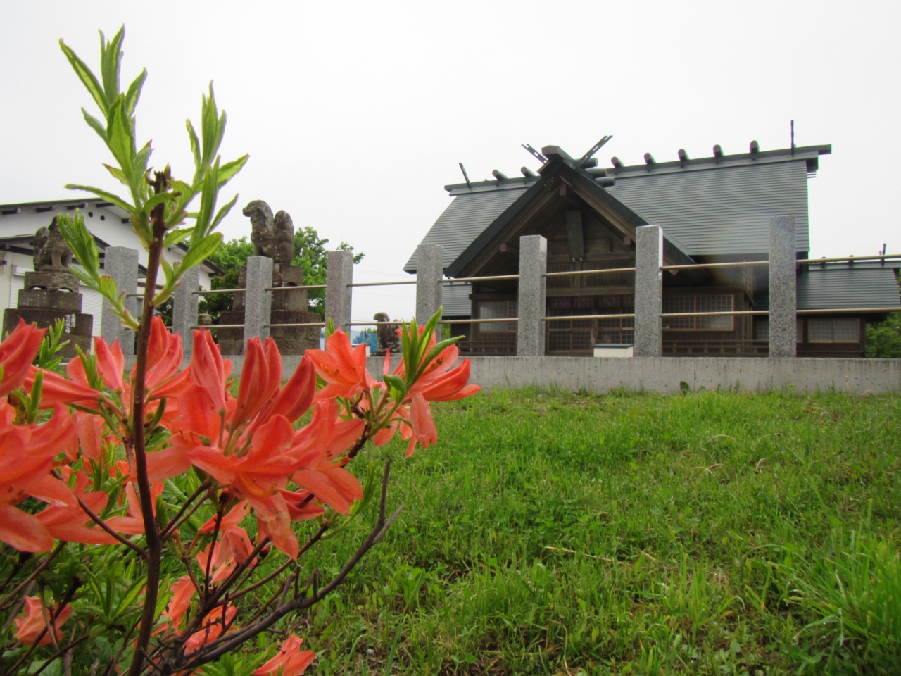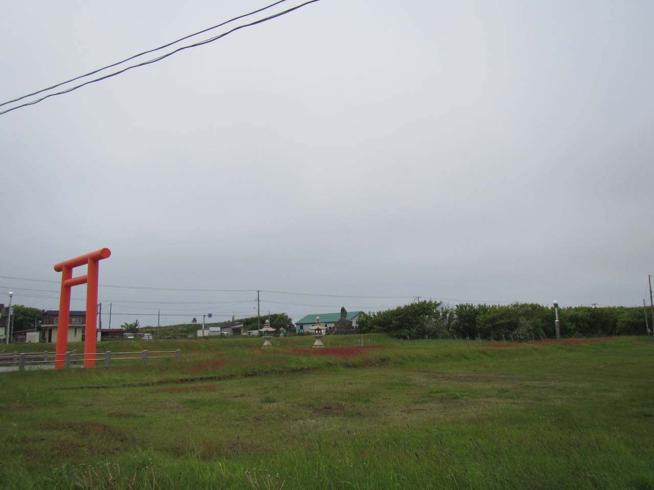 入口は広い草原、参道を行くと天塩川の河畔林の延長のような林沿いを進み、社殿に到着します。