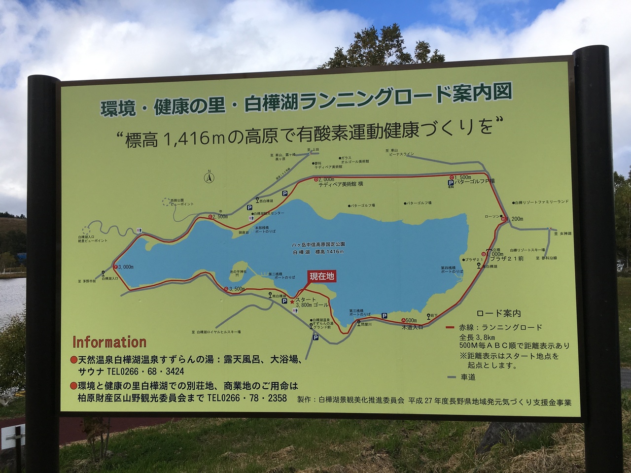 蓼科山の山麓にある湖。1周が約3.8kmあり、湖を囲むようにランニングロードが整備されているので、トレーニングには丁度いい感じである。