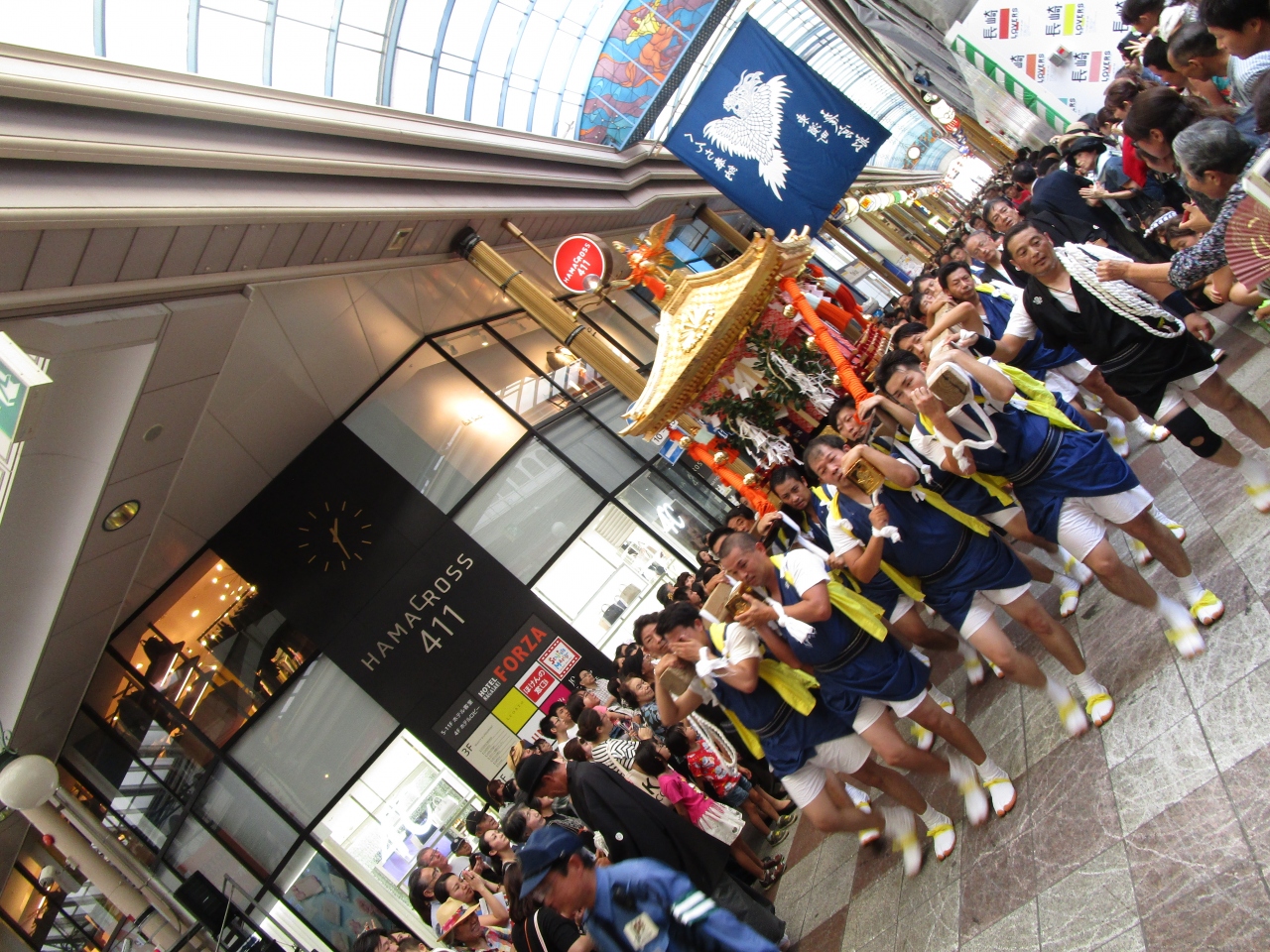 その後、街中を『庭先回り』で披露される練り歩きを観るため市内へ。友人に見所を教えてもらいながら、市内のあちこちを散策しました。3連休で天候にも恵まれ最高のおくんちでした!