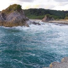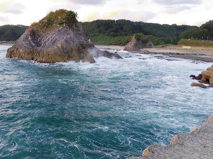 堤防に囲まれた、海岸です。堤防には散策道があり、堤防の先まで行けます。