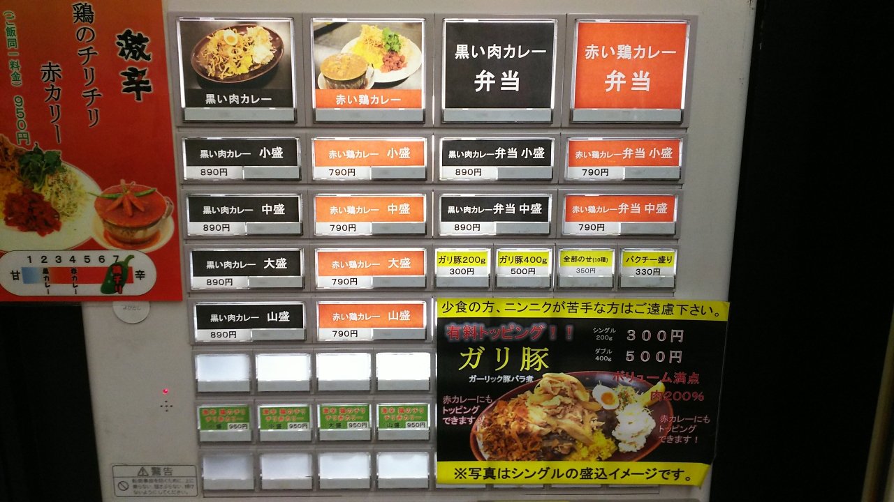 メニューは、黒い肉カレー(890円)と赤い鶏カレー(790円)の2種類で、小盛から山盛まで、値段は同じです。