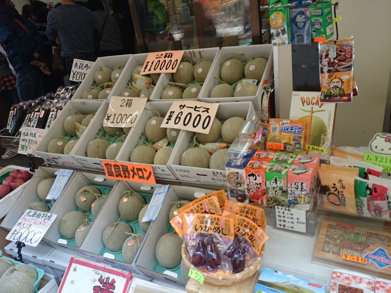 お店には地元の富良野メロン等の野菜果物、イカめし等の魚介類が並んでます。