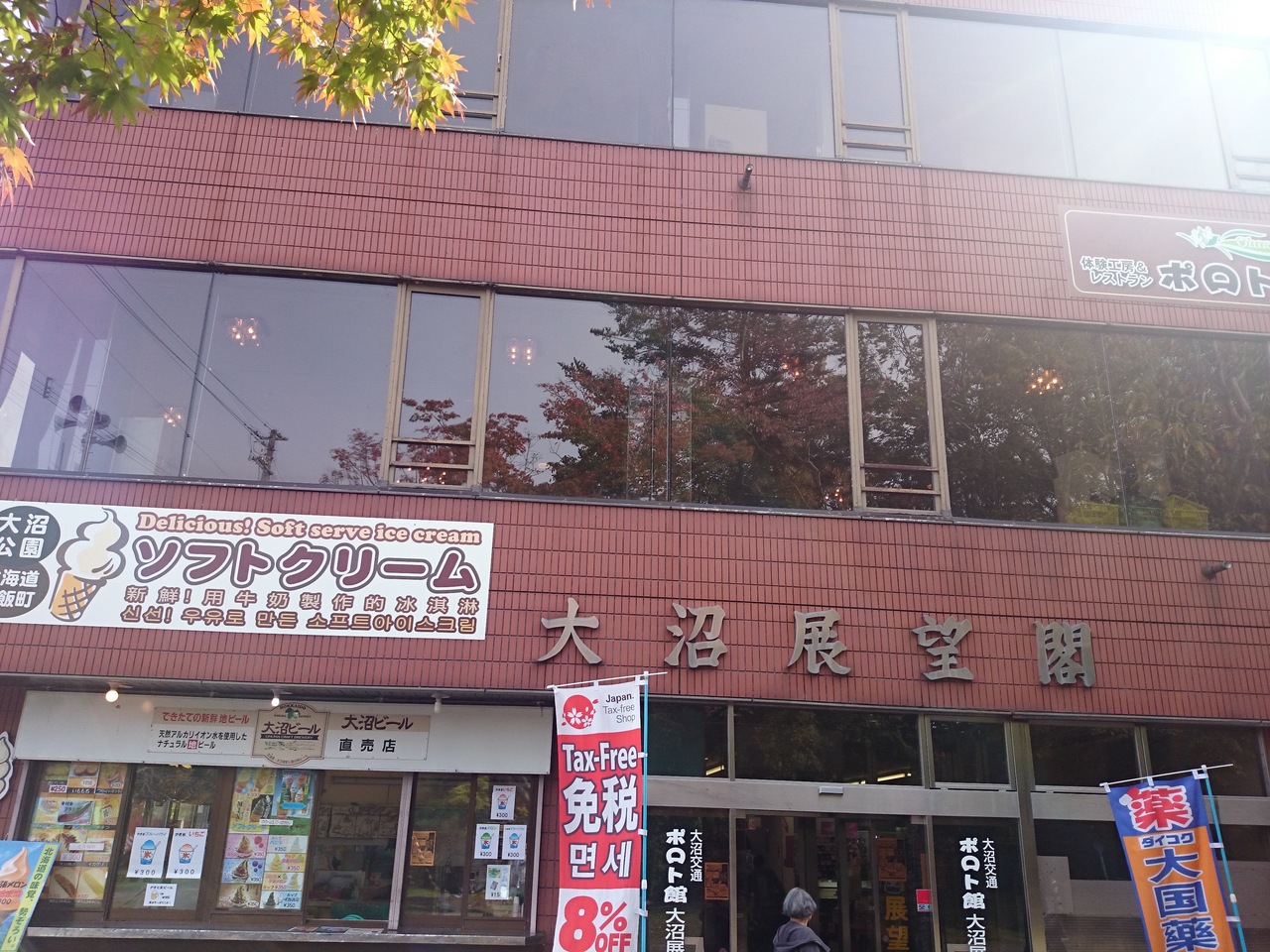 大沼公園駅から徒歩5分、大沼国定公園の前にあるレストランと売店の施設です。レストランからも大沼湖の景色が見れそうです。