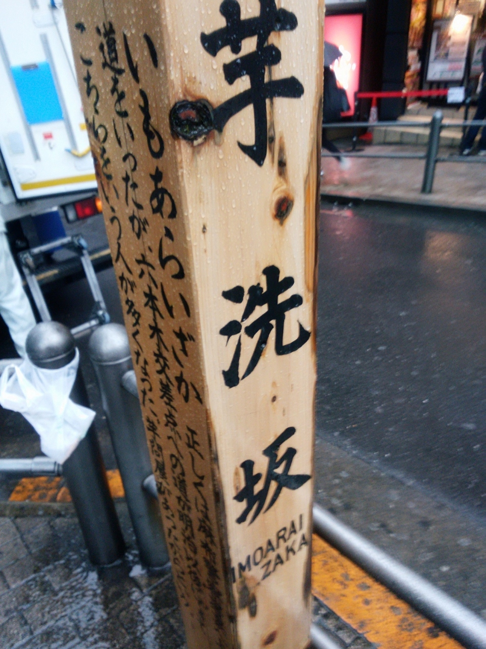 六本木交差点の一角にあるアマンドの脇(左側)から下っていく坂道です。坂道の両側にはオシャレなカフェやレストランがありましたが、これといった特徴がある坂道ではなかったです。「芋洗坂」の名前の由来も芋問屋があったからのようですが、現在はその面影となるような問屋もなく、標識の解説なければ、何故、芋洗坂なのか疑問が残ってしまうような坂道です。