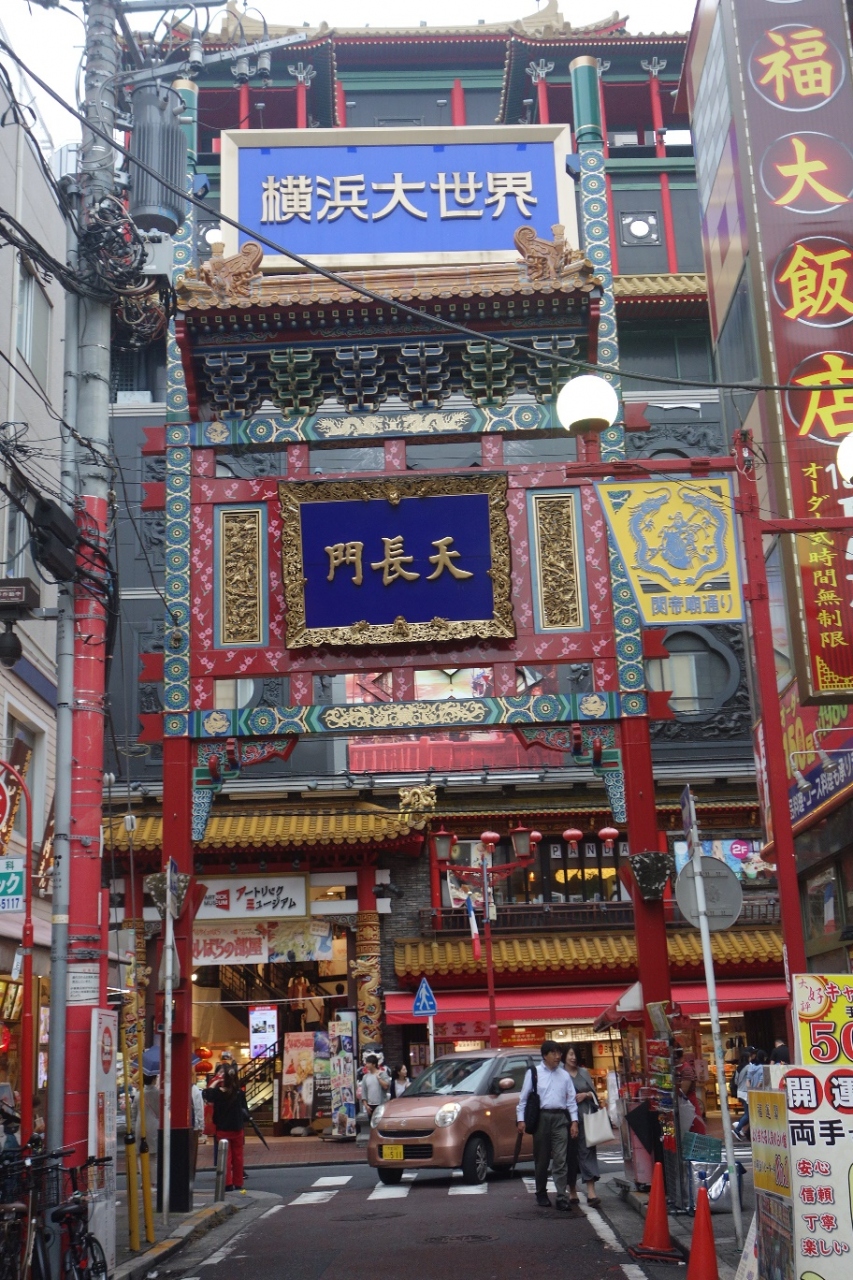 横浜の中華街を囲むように建つ門のひとつです。行った時が夕方だったせいか、人出が多くてとても賑やかでした。修学旅行生らしきグループがガイドさんに案内されて中華街を散策したり食事の会場へ案内されていたりして界隈は人ごみとなっていました。