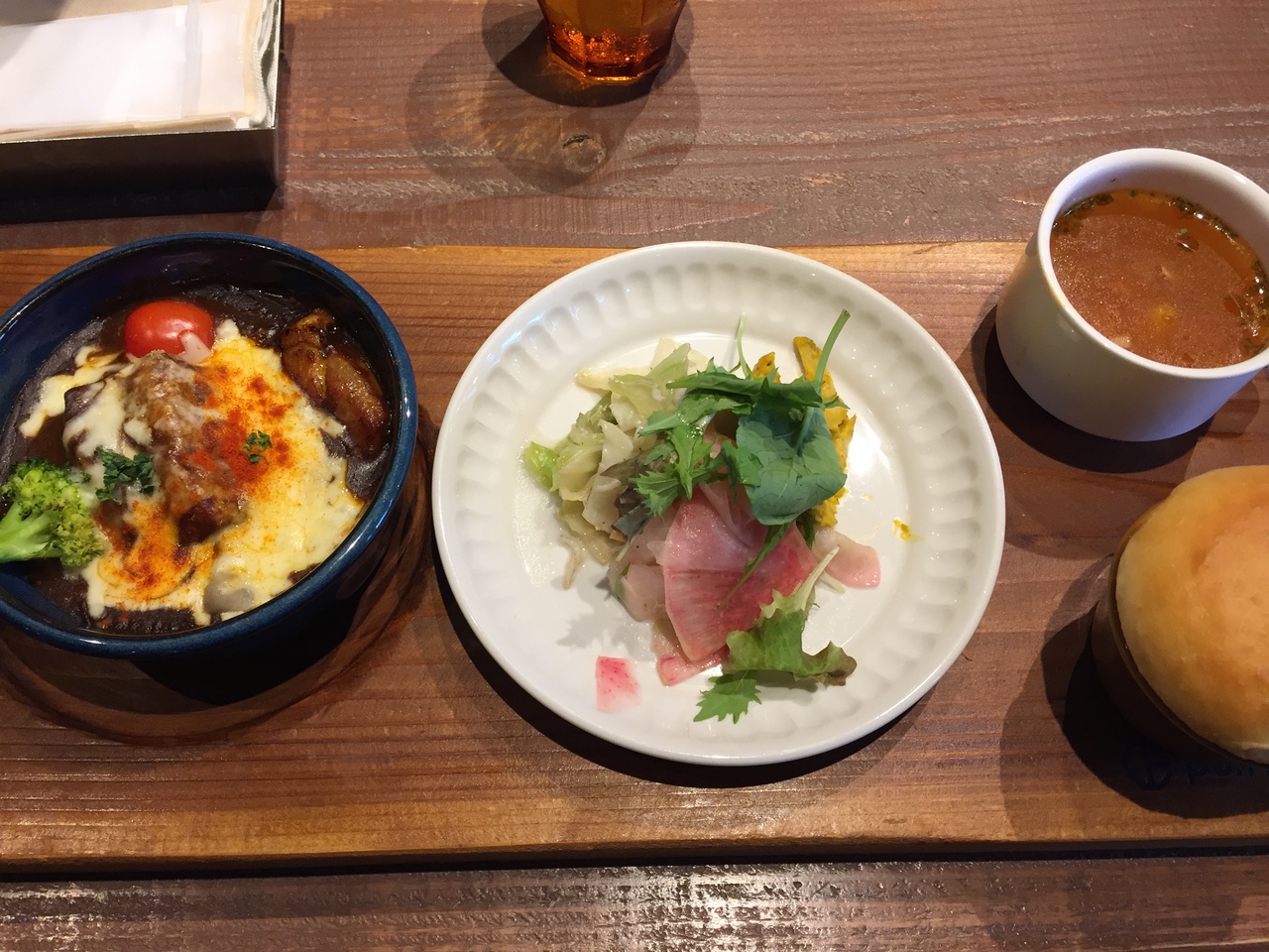 ランチをケーキセットorパフェセットにすると2000円弱になり、内容的には少しお高めに感じましたが、店内の雰囲気もお洒落でしたし、忙しい中接客も丁寧で、料理も見た目よりはボリュームがあり、さすが人気店だと思いました。