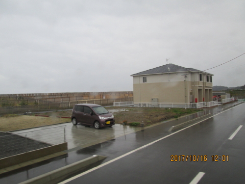 四倉海岸にも津波が来たそうです。壊れた建物等は全て片付けられていて、空き地に成っています。ポツンポツンと新しい家が建てられています。他の地区に引っ越された方も居るのでしょう。河の護岸工事、海の護岸工事など現在も工事中です。元の生活に戻るには