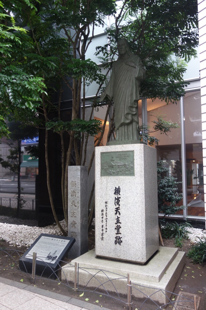 横浜中華街の朝陽門に近い場所に有る天主堂跡はこの場所に建てられた最初のカトリックの聖堂として歴史上とても重要ですが、今では大通りのビルのそばに碑が有るだけです。聖堂はこの後移転したり再建されたりして現在のカトリック山手教会につながるそうです。