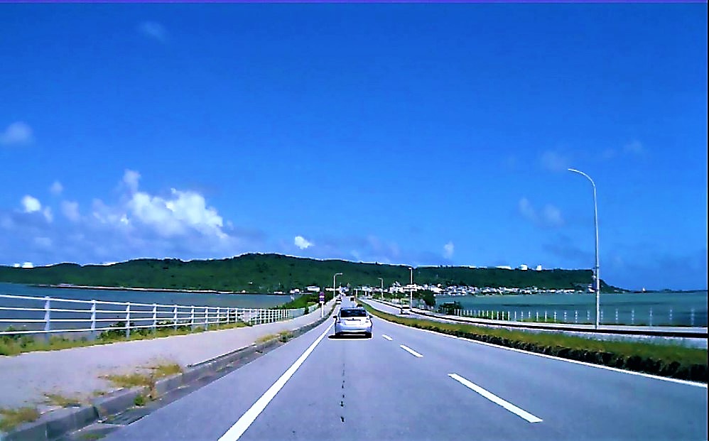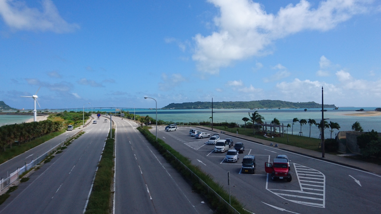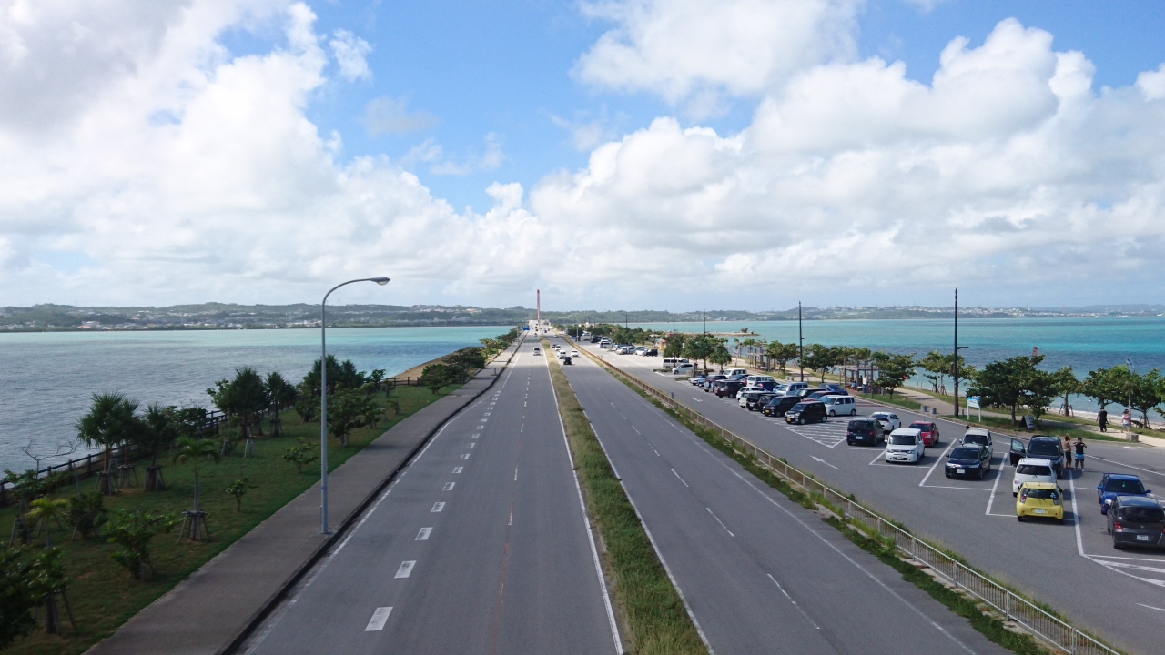 沖縄旅行で宮城島に行くときに海中道路を利用しました。海中道路を走行しているときは両端が海に挟まれているため、まるで海の上を走っているような気がしました。海の駅あやはし館にある歩道橋からは道路の両端が海になっていることがよく分かります。とてもきれいで印象に残る道路でした。