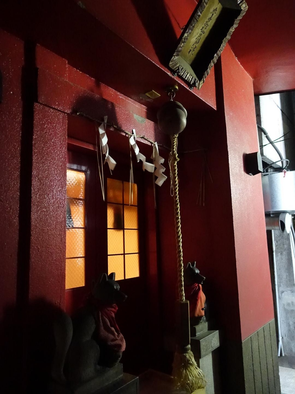 裏通り沿いに神社名を記した石柱がありますが、祠は建物の間を縫うように進んでやっと見つけることが出来ます。