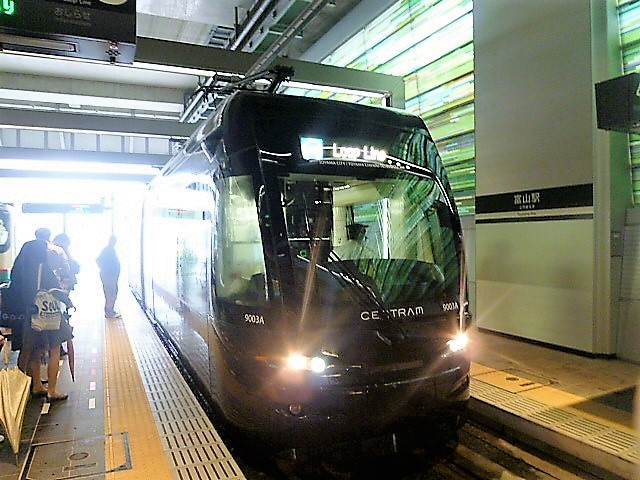 始めて富山市に来て(それも一日限り)、駅の観光案内所を訪ねたら`市電セントラムに乗ったら!乗り場もそこ!(横殴りの雨も降った時)`…ありがとうございました。で、セントラムに乗って`ガラス美術館`まで行きました。途中富山城も/繁華街も見えました(写真!)。セントラムは観光客は富山に来たら一度は乗るが良いと思いましたが、地元の人は足ですよネ。