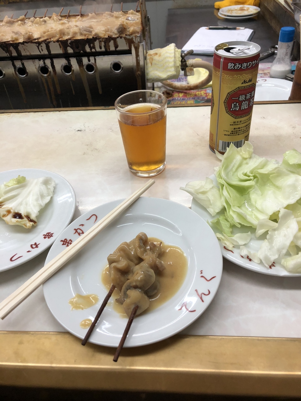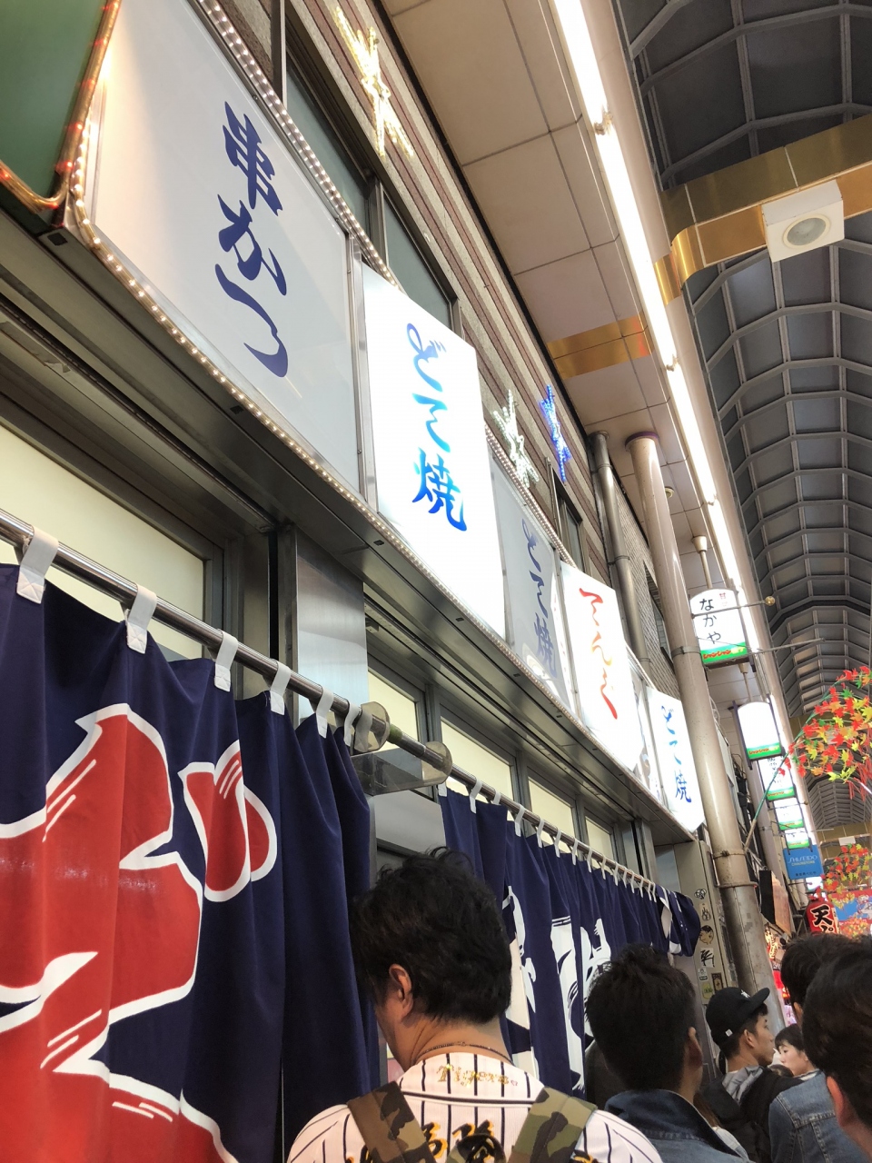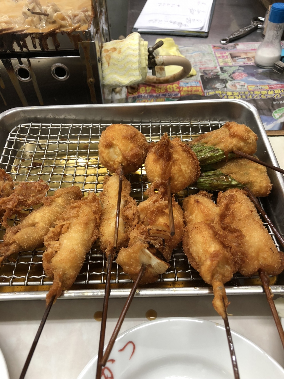 新世界で串カツを食べに、御堂筋線の動物園駅からジャンジャン横丁にやってきました。行列してるこちらのお店に並びました。20分くらい待ったかな。前に並ぶ気合の入った阪神ファングループに、これまた気合の入った通りがかりの酔っ払ったベイスターズファンが達が話しかけ写真を撮って盛り上がっていたので退屈しのぎになりました。(この日は甲子園でCSの初日で阪神が勝った。)