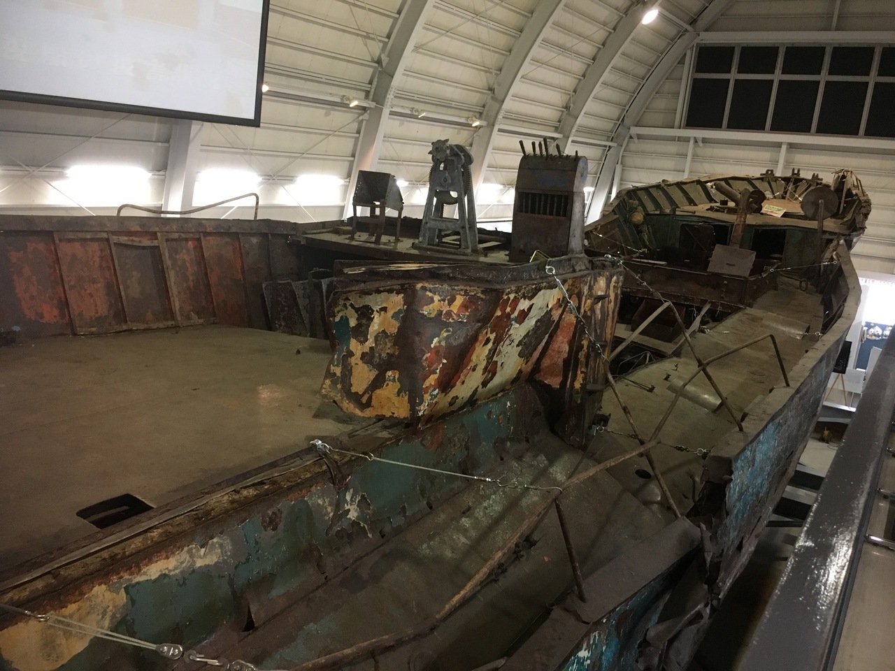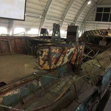 2001年に東シナ海で海上保安庁の巡視船と交戦後自爆した北朝鮮の不審船が展示されています。