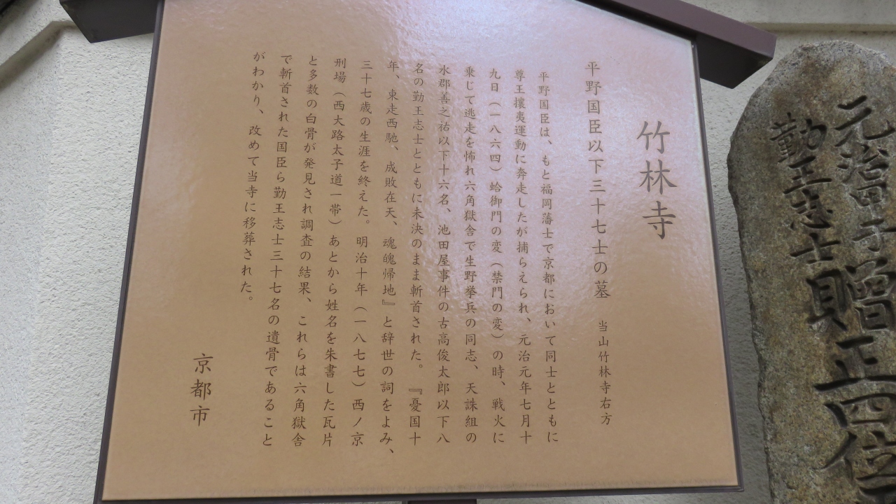 竹林寺の中には六角獄舎に幽閉された勤王志士らが罪状も決まっていないのに