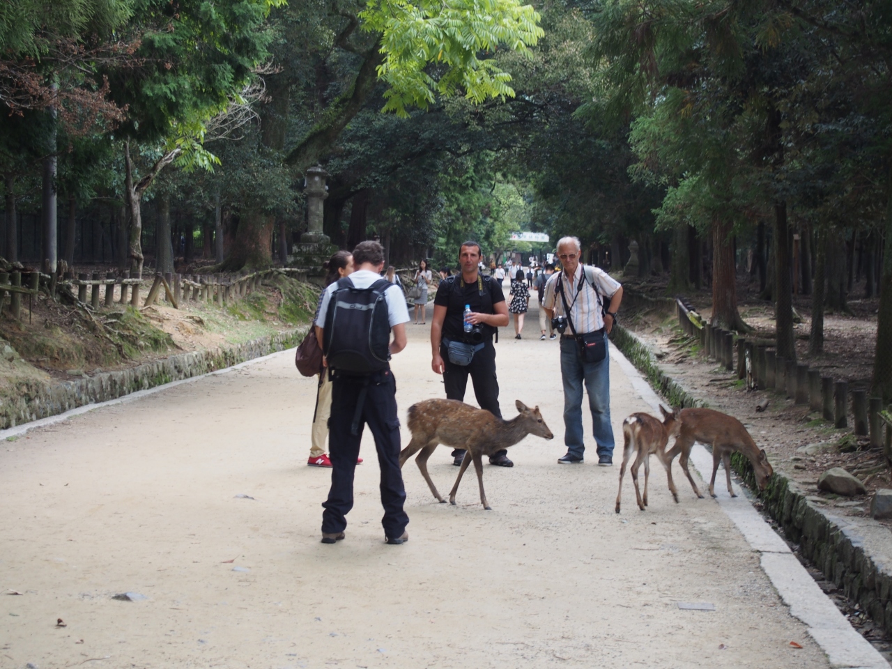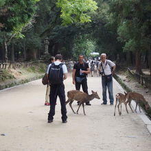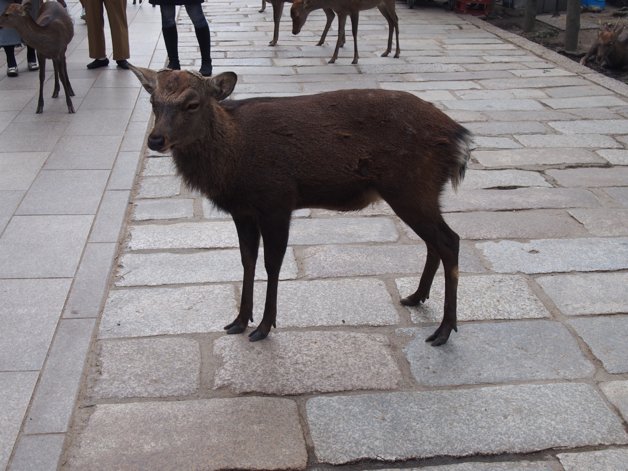 春日神社、東大寺、奈良公園などに見かける奈良にはなくてはならない鹿です。野生の鹿ですが、おとなしく、観光客にも平気で近寄り、一緒に写真撮影をしています。鹿せんべい(150円)が付近では売られていて、これを持っているときには、鹿の集まりがとてもいいです。10月は鹿の角切りの時期にあたり、訪れた日は昼から春日神社ふもとでおこなわれるようでした。