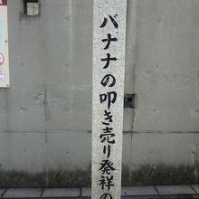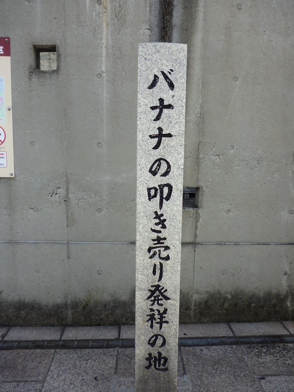 道の横にひっそりとバナナの叩き売りの碑が建っていました。門司港はバナナの積み荷が入ってきた港です。傷みやすいので叩き売りをしていたそうです。門司港レトロ地区では、バナナに関する商品やオブジェをよく見かけました。