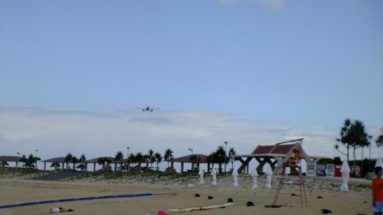 沖縄の空港近くにあるビーチです。AKBの選挙をやるはずだった場所ですね(雨で中止だったけど)。人工ビーチでクラゲ防止ネットもあるし、監視員さんもいるので安心のビーチです。透明度も十分。遠浅で波も少ないです。空港からの飛行機が真上を通っていて迫力があります。駐車場は広くてよかったですが、有料でした。