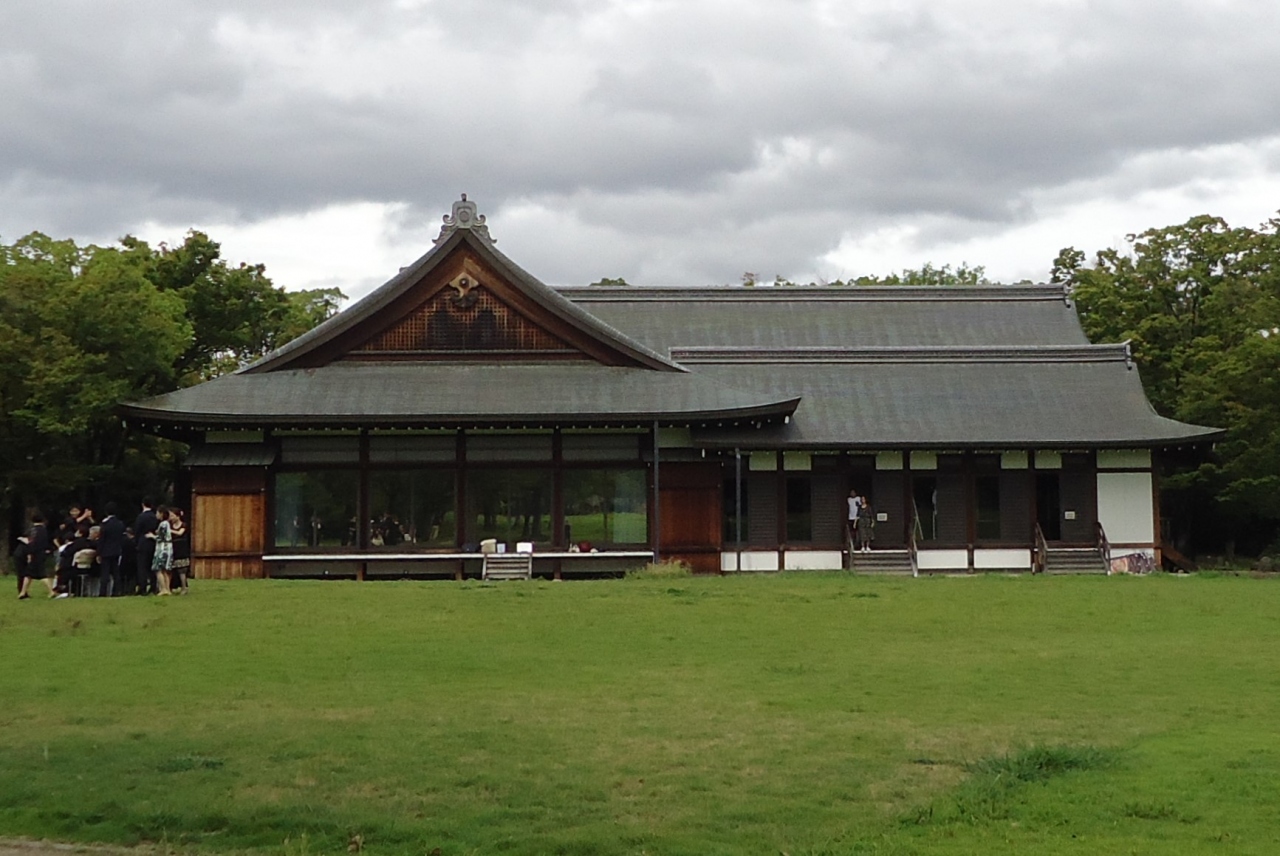 大阪屈指の桜の名所である大阪城西の丸庭園、中に風情ある建物があります。