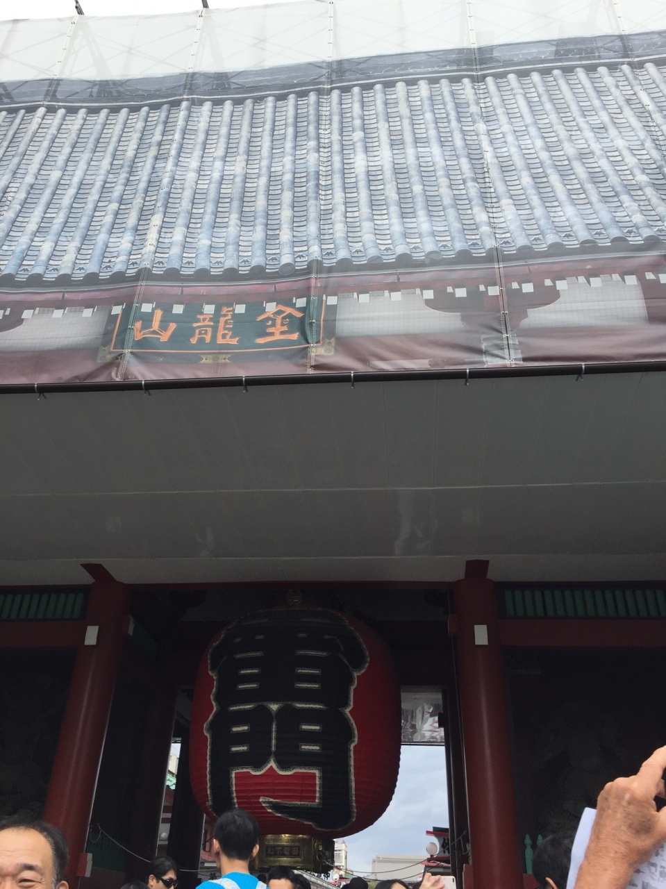 浅草のシンボルにもなっている雷門ですが、なんかおかしい?と思ったら工事中らしく実物大の写真がプリントされたシートで覆われていました。笑っちゃうほどとてもよくできていました。提灯は、そのままあります。工事中なのは残念でしたが、その心遣いは観光地の鏡だと思います。