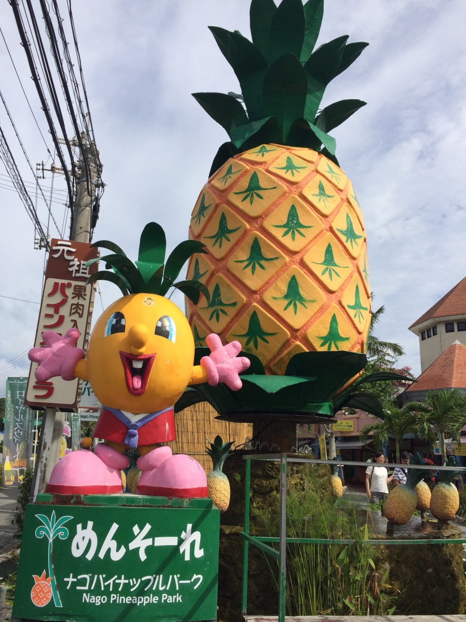 沖縄県名護市にあるパイナップルパーク。ツアー旅行で行きました。はじめ、パイナップル畑の説明をしてもらって、その後、買い物する場所へ。ワインの試飲やお菓子の試食をしながら、買い物をしていきました。