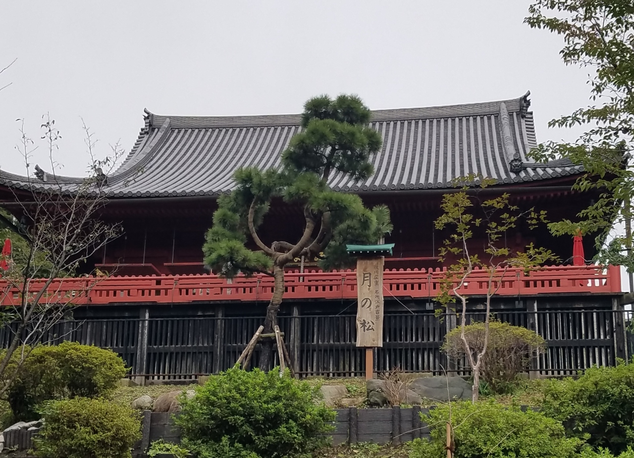 月の松は、上野公園の清水観音堂前にあるリング状に曲がった形の松です。江戸時代の浮世絵氏の歌川広重も描いたその姿は、目をひきます。下から見上げると、色鮮やかな朱色のお堂を背景に松の緑とリングが映えていたのが印象に残っています。