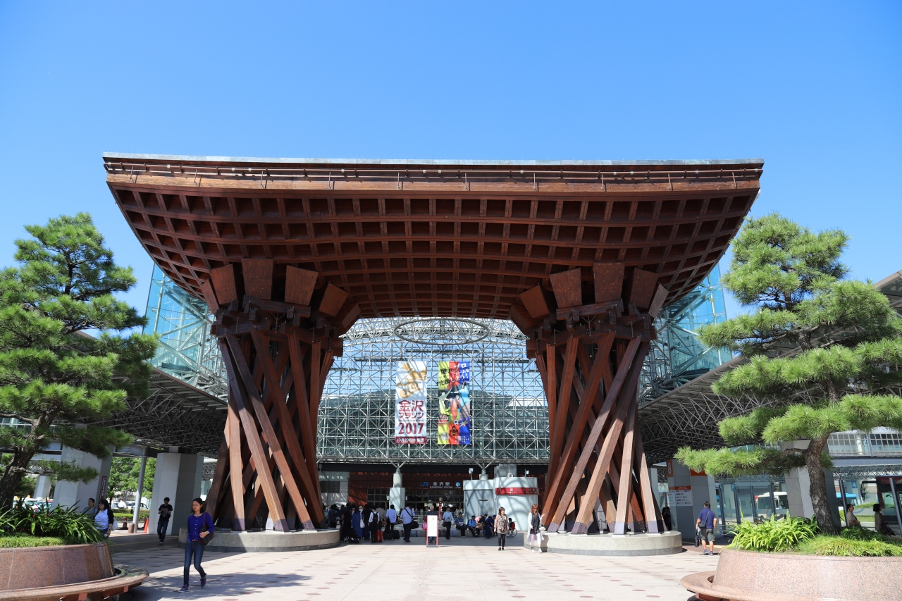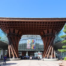 新幹線開通以来、ずっと見たいと思っていた金沢駅の鼓門は大きくて、繊細で、圧巻でした。