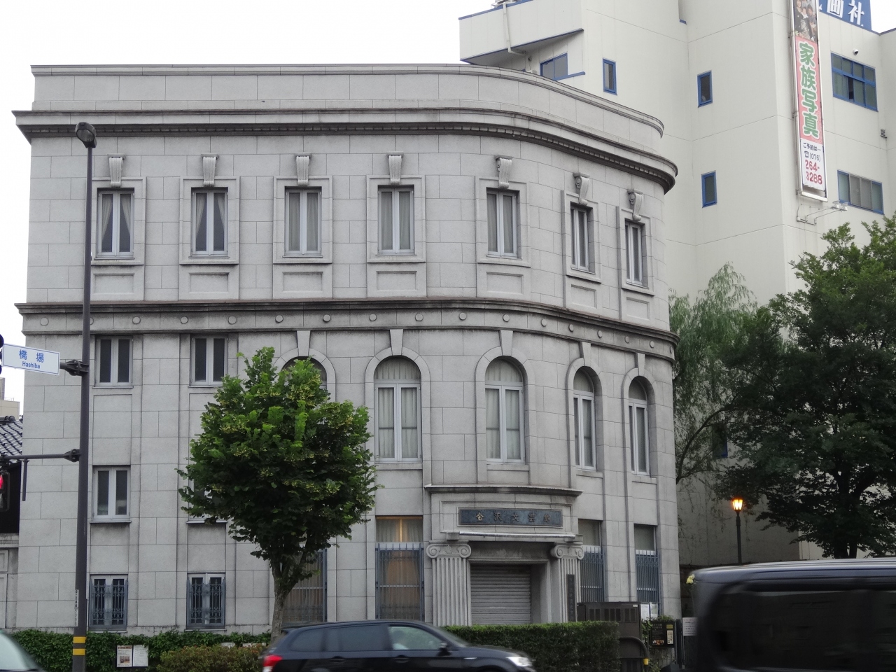 茶屋街に向かう途中の交差点の角にあるレトロで大変目立つ建物です。