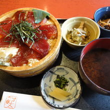 てこね寿司の梅を注文。梅でも十分なボリュームです。二人で分けている人もいました(言わなくても取り分けの茶碗をくれていて気が利くなぁと感心)。