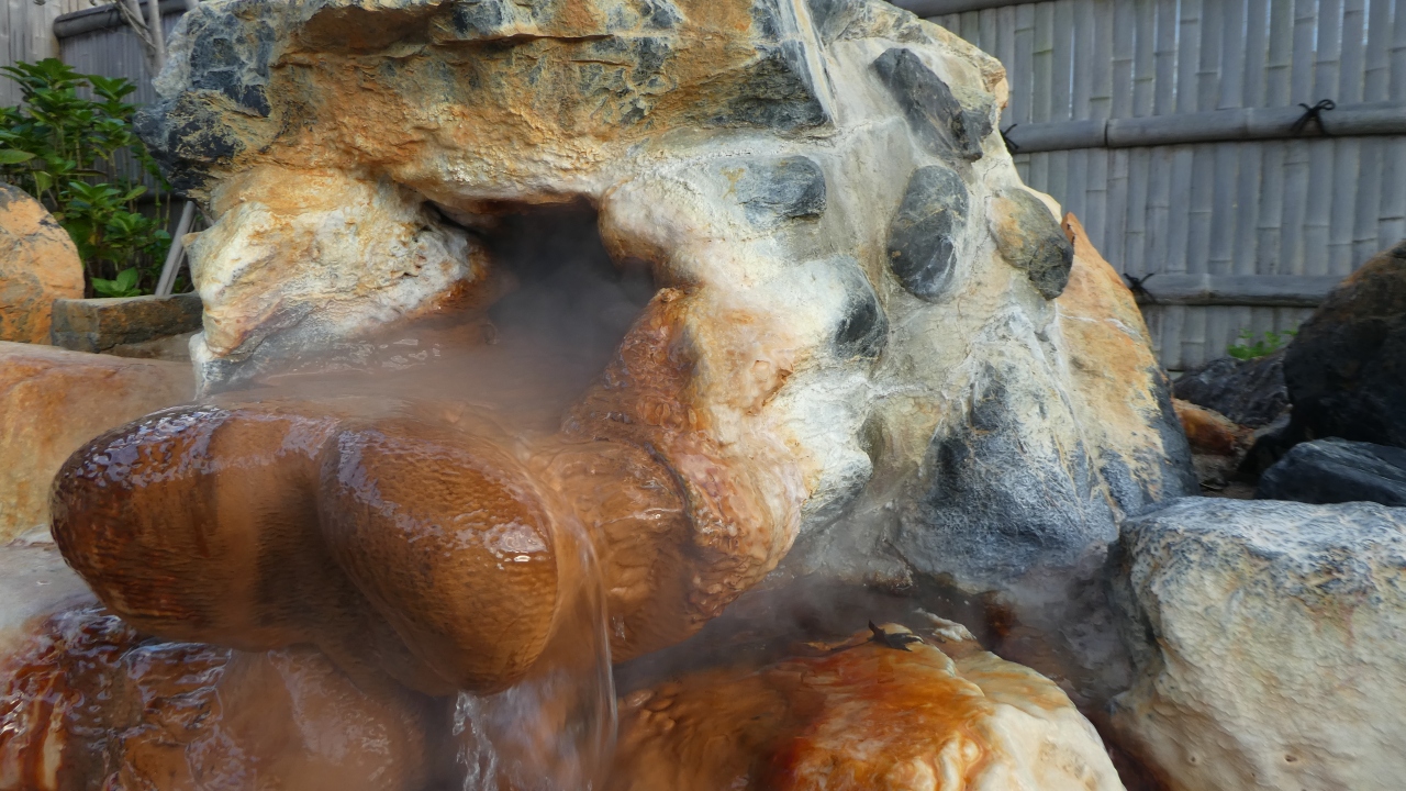 何が凄いと言って、バシュッ!!みたいな音を立てて、定期的にガスと共にお湯が溢れ出る湯口を持つ源泉風呂があること(笑)