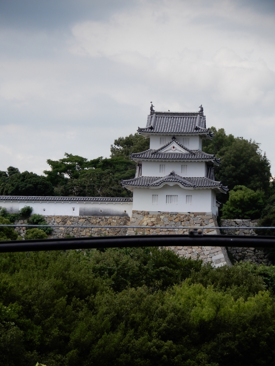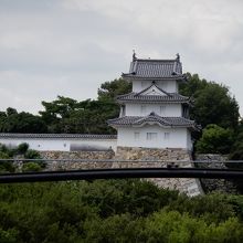 この明石城には二つの櫓があります。一つは坤櫓(ひつじさるやぐら)、そしてもう一つは巽櫓(たつみやぐら)です。そのうちの巽櫓はJR明石駅に停車中の電車内からも見ることができました。添付の写真は電車内から撮影したものです。
