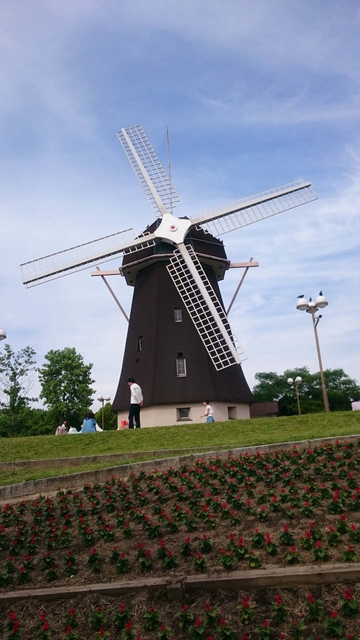 中には、池、芝生広場、風車、有料の温室植物園や、花博の時に作られた世界各国の庭が残っています。