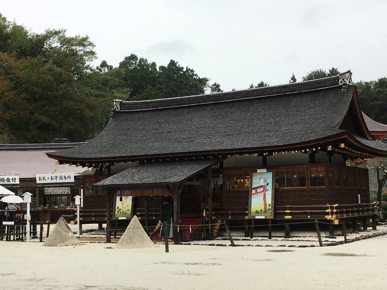 北山駅からお散歩がてら徒歩20分ほど。京都で最も古いと言われている神社の一つ、世界遺産の上賀茂神社に到着。ガイドブックによくでてくる立砂は初めて観ましたが、とても神秘的綺麗です。現在あちらこちら少し修繕工事などされていましたが、御朱印も頂き満足な参拝が出来ました。